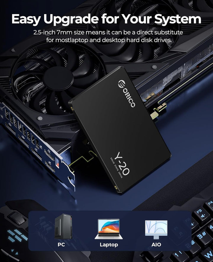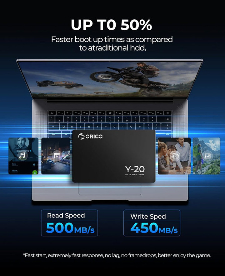 - 3D-NAND-Technologie: ORICO Y20 2,5-Zoll-SSD verwendet 64-Layer-3D-NAND-Flash, hohe Zuverlässigkeit und Ausdauer, bietet optimierte Leistung für die tägliche Arbeit