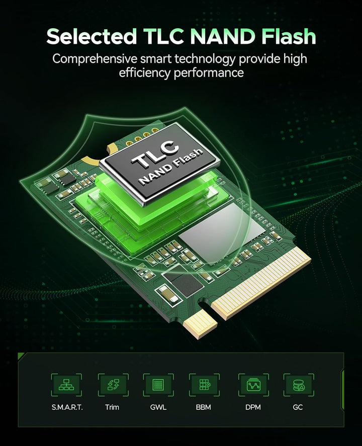- TLC NAND Flash: Die M.2 SSD wird von hochwertigem TLC NAND Flash angetrieben und bietet eine verbesserte Leistung mit dynamischem Caching und ECC-Technologie für verbesserte Datenintegrität. Sie liefert schnellere Lese-/Schreibgeschwindigkeiten und