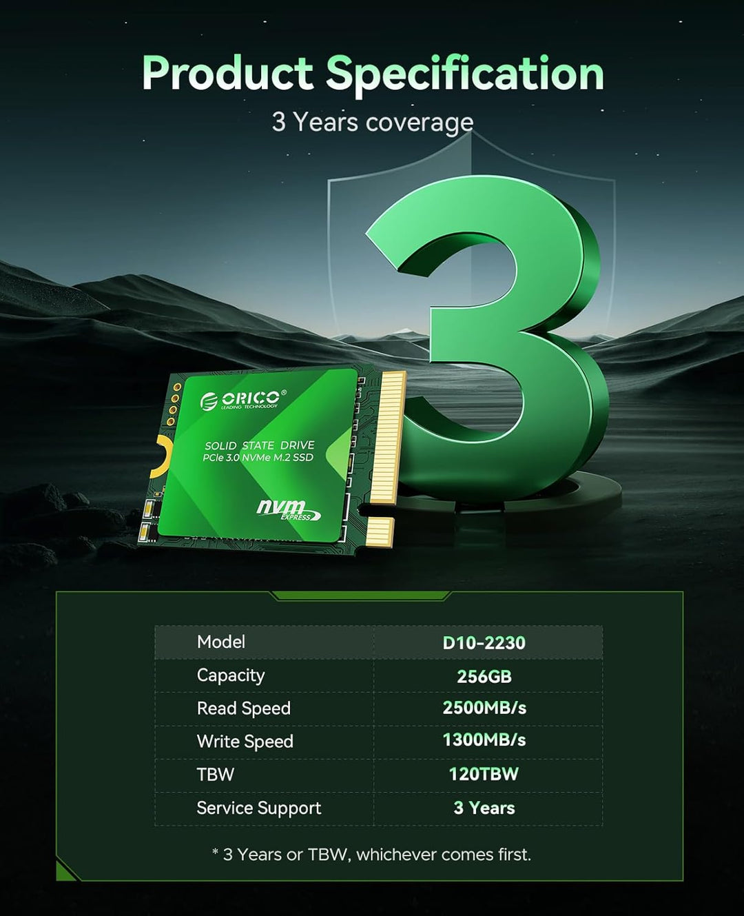 - Kompakte 2230 SSD: Die ORICO D10-2230 M.2 NVMe SSD verfügt über einen ultrakompakten Formfaktor und eine PCIe 3.0-Schnittstelle, die perfekt mit Geräten wie Steam Deck und Microsoft Surface kompatibel ist. Erreicht bis zu 2500MB/s Lese- und 1300MB/s