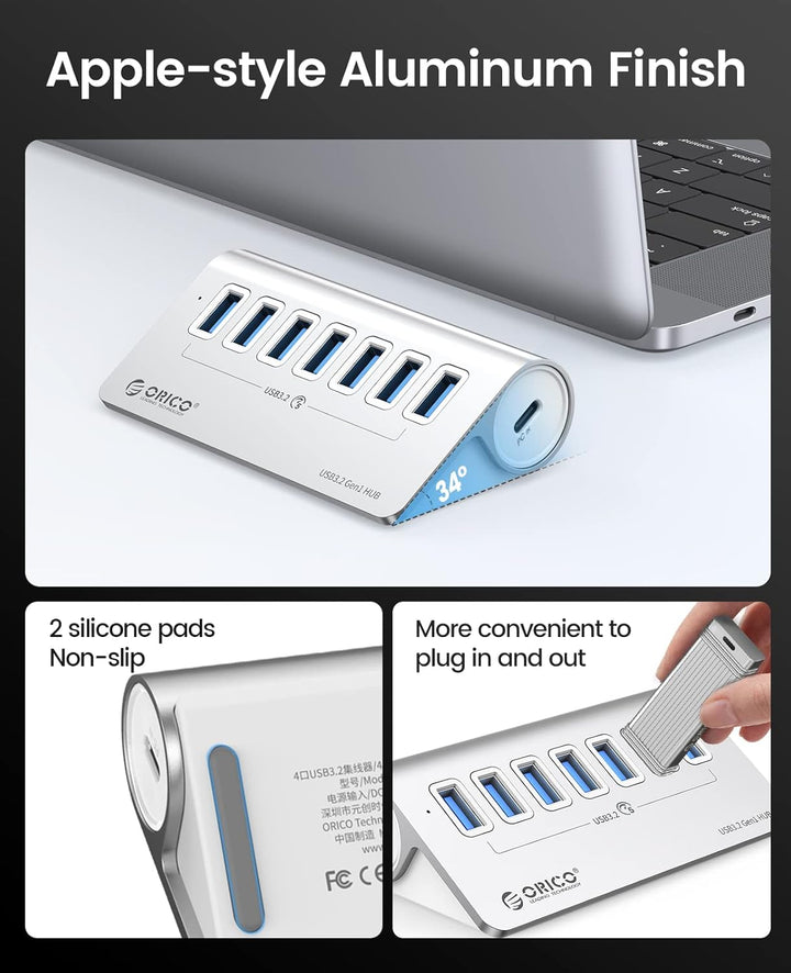 - đ„ Alles Aluminium Material: ORICO USB C Hub Shell mit Vollmetall und Apple Design bietet nicht nur schnelle WĂ€rmeableitung und kratzfest, was eine verlĂ€ngerte Lebensdauer ermöglicht, sondern auch perfekt zu Ihrem Apple GerĂ€t passt. Aluminium USB