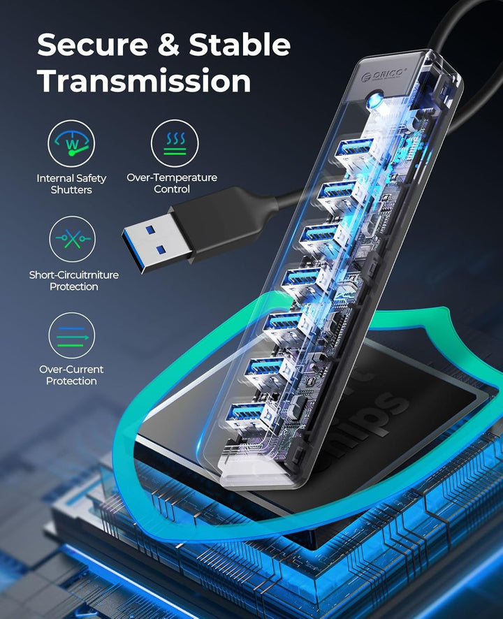 - 【Hochwertiges Material】ORICO USB Verteiler ist mit einem Hochleistungs-Host-Chip ausgestattet, der die Datenübertragung stabiler und effizienter macht, zusätzlich zum eingebauten Stromschutzgerät ist die Schale aus Abs-Material hergestellt, so