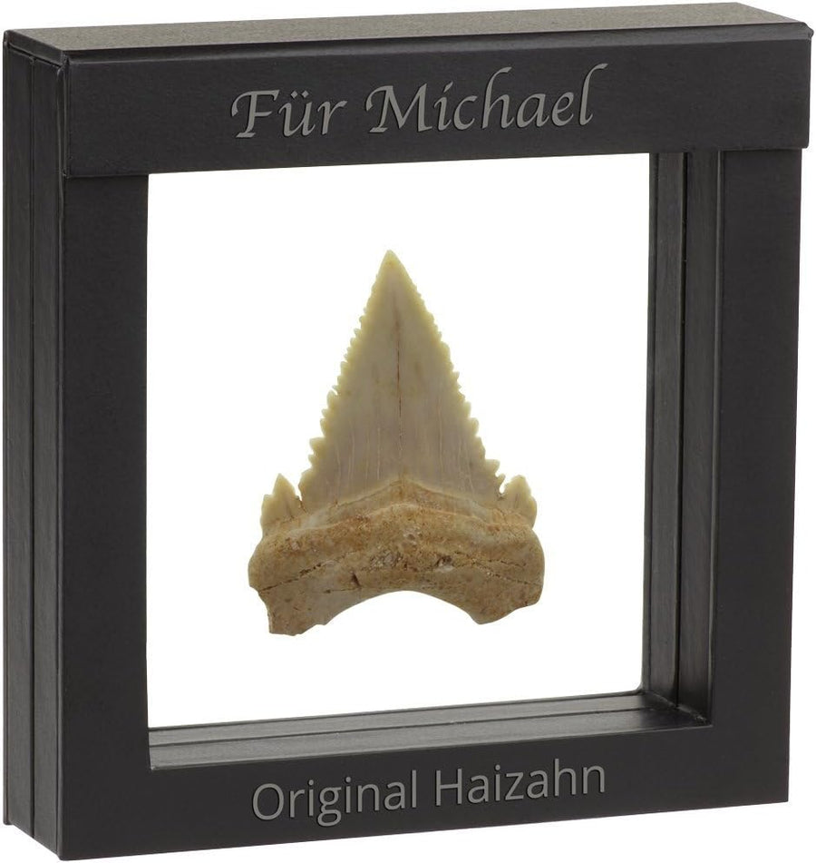 - echter Original fossiler Hai-Zahn Otodus obliquus, Unikat, daher unterschiedlich gross von 3-5 cm