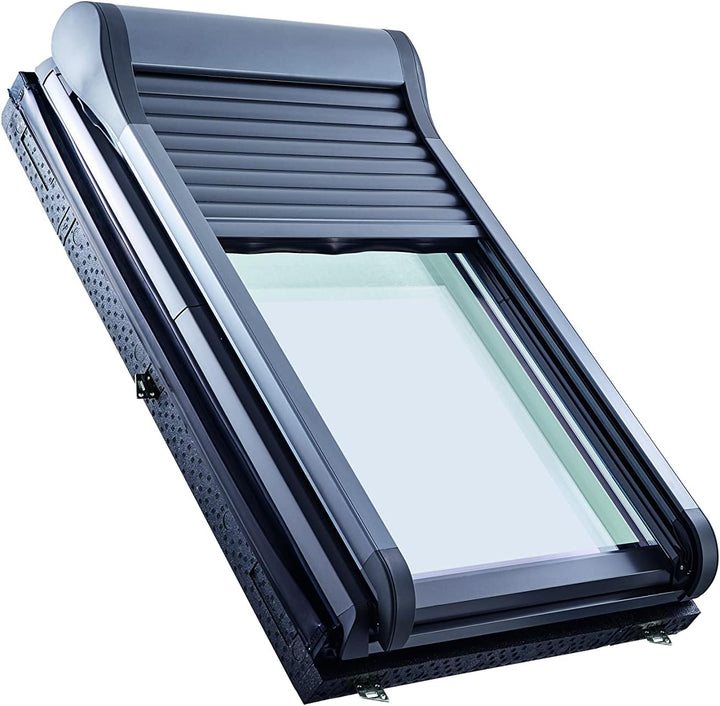 - VOLLE FUNKTIONALITÄT: Volle Bedienbarkeit des Dachfensters, auch bei geschlossenem Rollladen, durch montierte Führungsschienen auf dem Flügel. Schlankes Design durch geringe Aufbauhöhe.