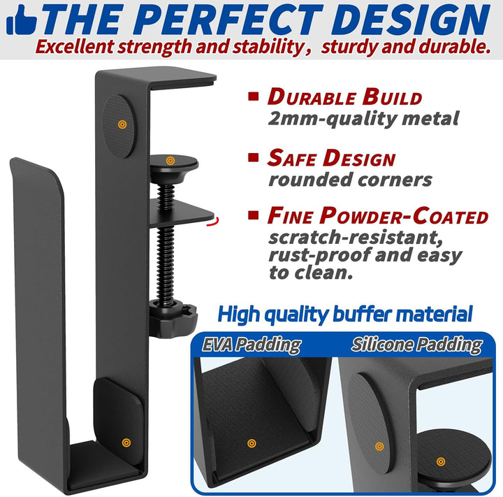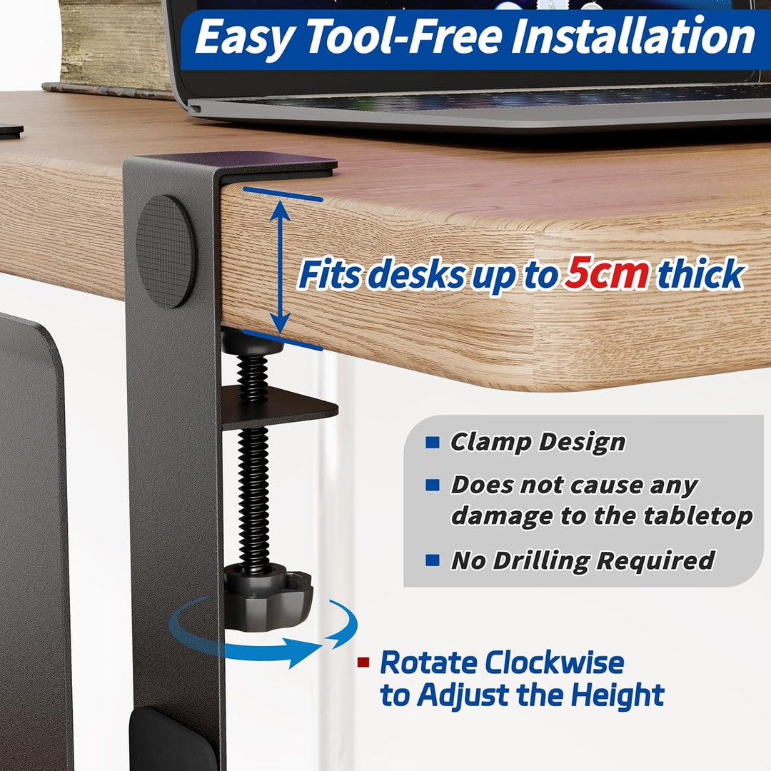 • Werkzeugfreie Montage – Die praktische Klemmbefestigung passt an Schreibtische bis zu einer Dicke von 5cm. Kein Bohren, keine Schrauben, keine Werkzeuge nötig – einfach anklemmen und fertig.