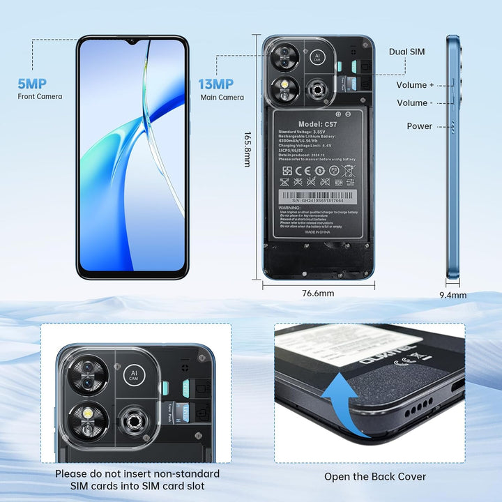 - 4500mAh Grosser Akku: Das günstige handys ist mit einem 4500 mAh Akku, einem Typ-C-Ladeanschluss und einem 3,5-mm-Kopfhöreranschluss ausgestattet. Egal ob Sie in sozialen Netzwerken surfen, Kurzvideos ansehen, chatten oder Spiele spielen, die Batterie