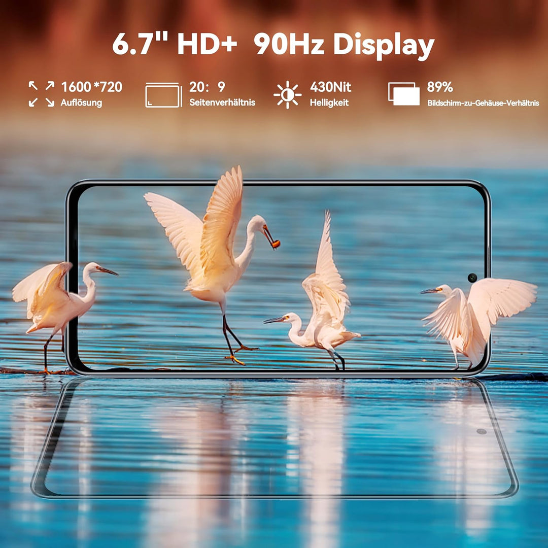 - 【6,7 Zoll HD+ Bildschirm und 90-Hz-Aktualisierungsrate】 Das C58 Pro smartphone ohne vertrag 6,7-Zoll-Display verwendet die Incell-Technologie, die lebendigere Farben und ein ultra-leuchtendes Design bietet. Mit einem Bildschirm-zu-Körper-Verhältnis