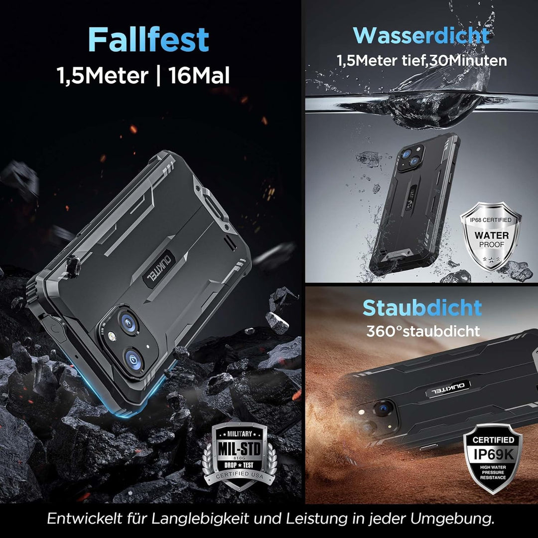 - 【𝗜𝗣𝟲𝟴/𝗜𝗣𝟲𝟵𝗞 𝗪𝗮𝘀𝘀𝗲𝗿𝗱𝗶𝗰𝗵𝘁 𝘂𝗻𝗱 𝗦𝘁𝗮𝘂𝗯𝗱𝗶𝗰𝗵𝘁】Das OUKITEL G2 Wasserdicht Handy ist ein robustes und erschwingliches Telefon mit IP68/IP69K-Zertifizierung. Es