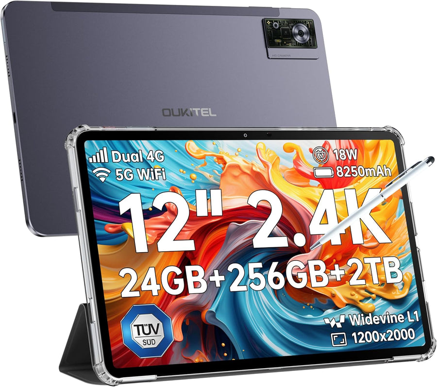 - 【12 Zoll Tablet 2.4K +7,5 mm Ultradünnes Design】Das OUKITEL OT5S Android Tablet 12 zoll gross verwendet einen 2.4K IPS Bildschirm mit Augenschutz. Das Bildschirm-zu-Körper-Verhältnis von bis zu 81 % sorgt für ein breiteres Sichtfeld. Das OUKITEL