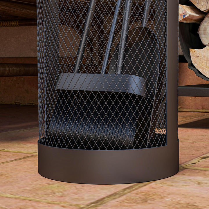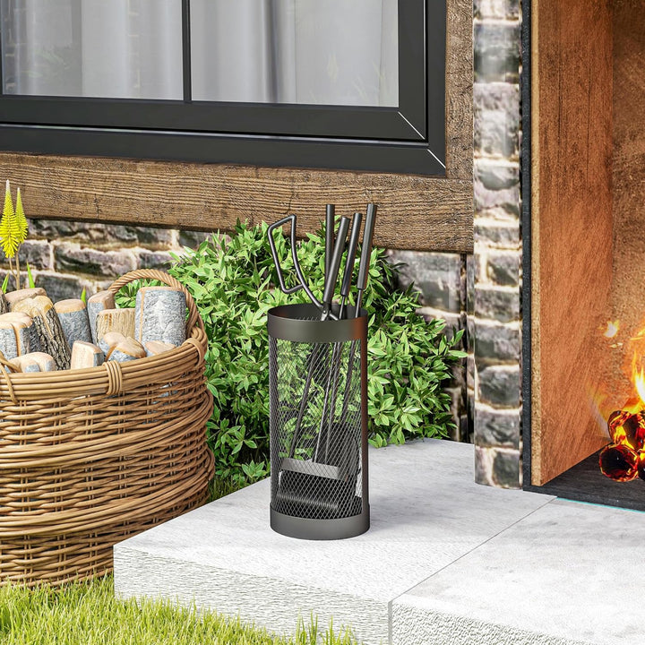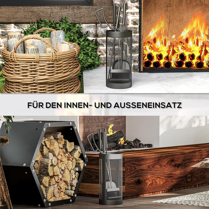 Outsunny Kaminbesteck Set 5-teilig Kaminzubehör mit Besen, Schaufel, Zange, Schürhaken und Korb, Kam