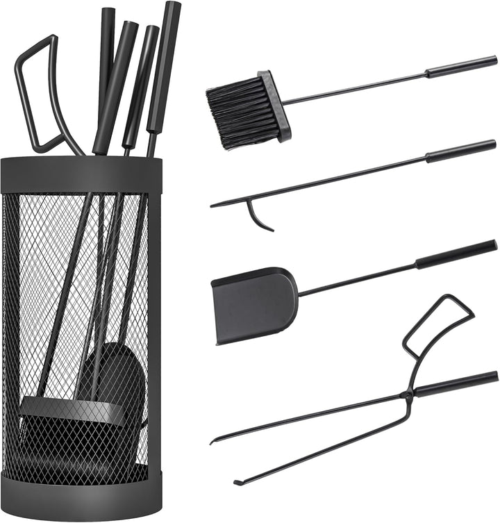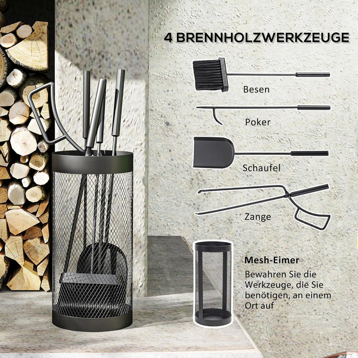 • Vollständiges Set: Dieses Kaminbesteck Set enthält alles, was Sie benötigen – Besen, Schaufel, Zange, Schürhaken und einen praktischen Metallkorb. Alle Werkzeuge können ordentlich im Korb aufbewahrt werden, sodass sie stets griffbereit sind und