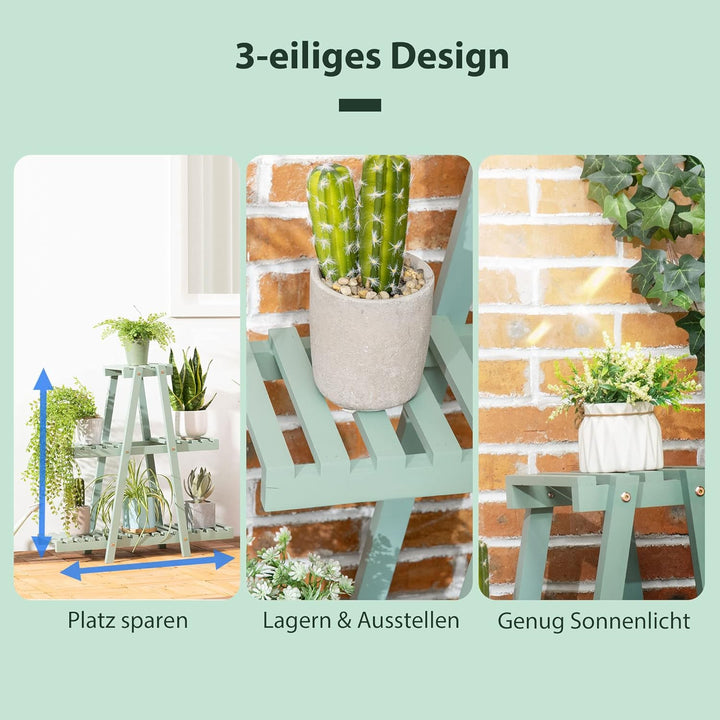 Outsunny Pflanzenregal, Blumenregal mit 3 Stufen, Pflanzentreppe für 6 Blumentöpfen, Pflanzenständer