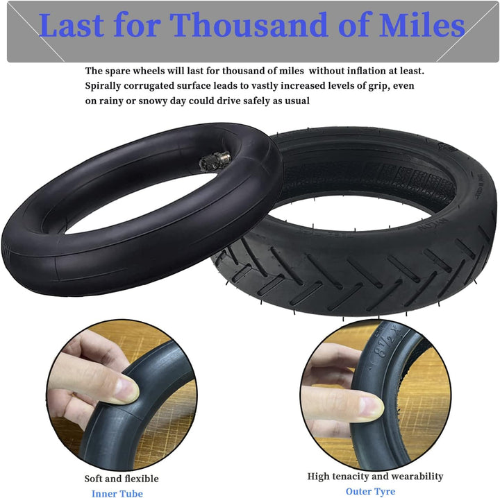 - đŽăEinfach zu installierenă: Scooter-Schlauch 8 1/2 x2 oder Innen- und Aussenreifensatz ist so einfach zu ersetzen, stellen Sie einfach sicher, dass das Ventil in die richtige Richtung zeigt, es hĂ€lt mindestens tausende von Kilometern ohne Aufpumpen. Es kann auf verschiedenen Arten von StrassenoberflĂ€chen, Autobahnen, unebenen Wegen, steinigen Strassen, sandigen Strassen und bergauf verlaufenden Strassen reibungslos fahren.