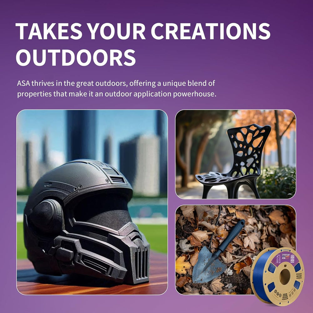 - 【Wetterfest】 - OVERTURE ASA UV-Filament hat alle Eigenschaften von 3D-Filament-ABS mit zusätzlichen Funktionen, die wetterfest sind. Unser ASA ist UV-beständig und resistent gegen Spannungsrisskorrosion. OVERTURE ASA kann für Aussenanwendungen wie