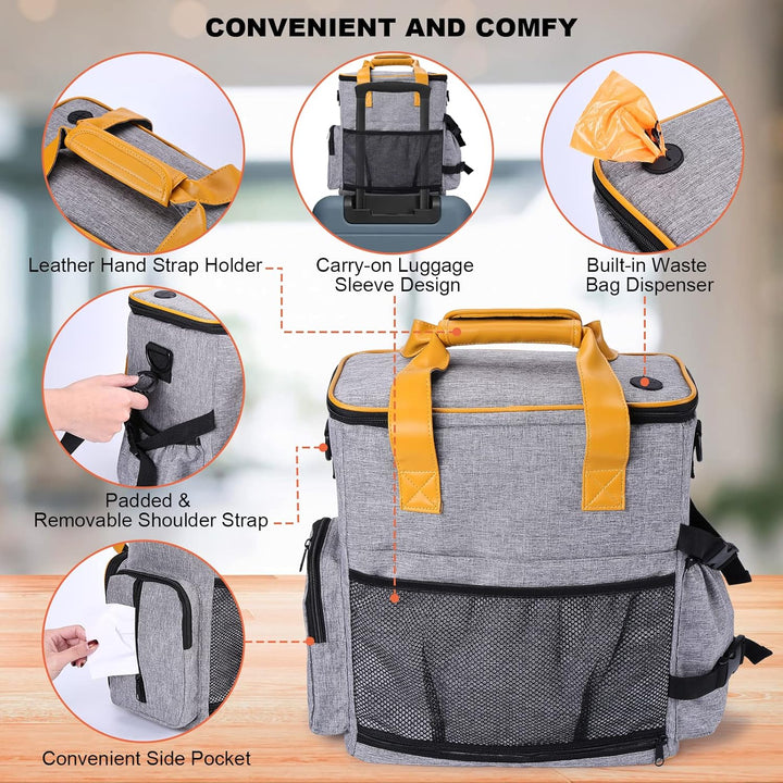 - 【MULTIFUNKTIONALES DESIGN】Die Hundereisetasche verfügt über einen integrierten Abfallbeutelspender, mit dem Sie den Müll bequemer entsorgen können, insbesondere wenn Sie auf Langstreckenreisen gehen.Der Riemen an jeder Seite der Tasche ist