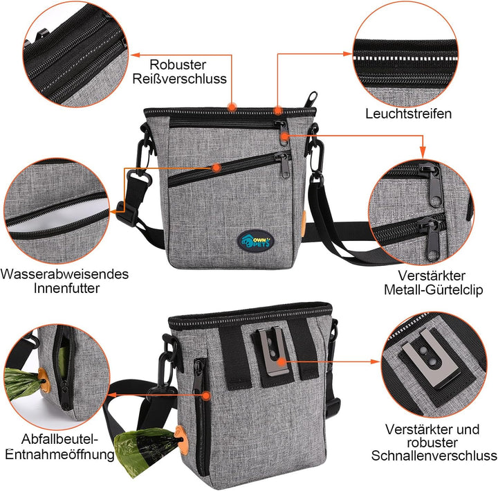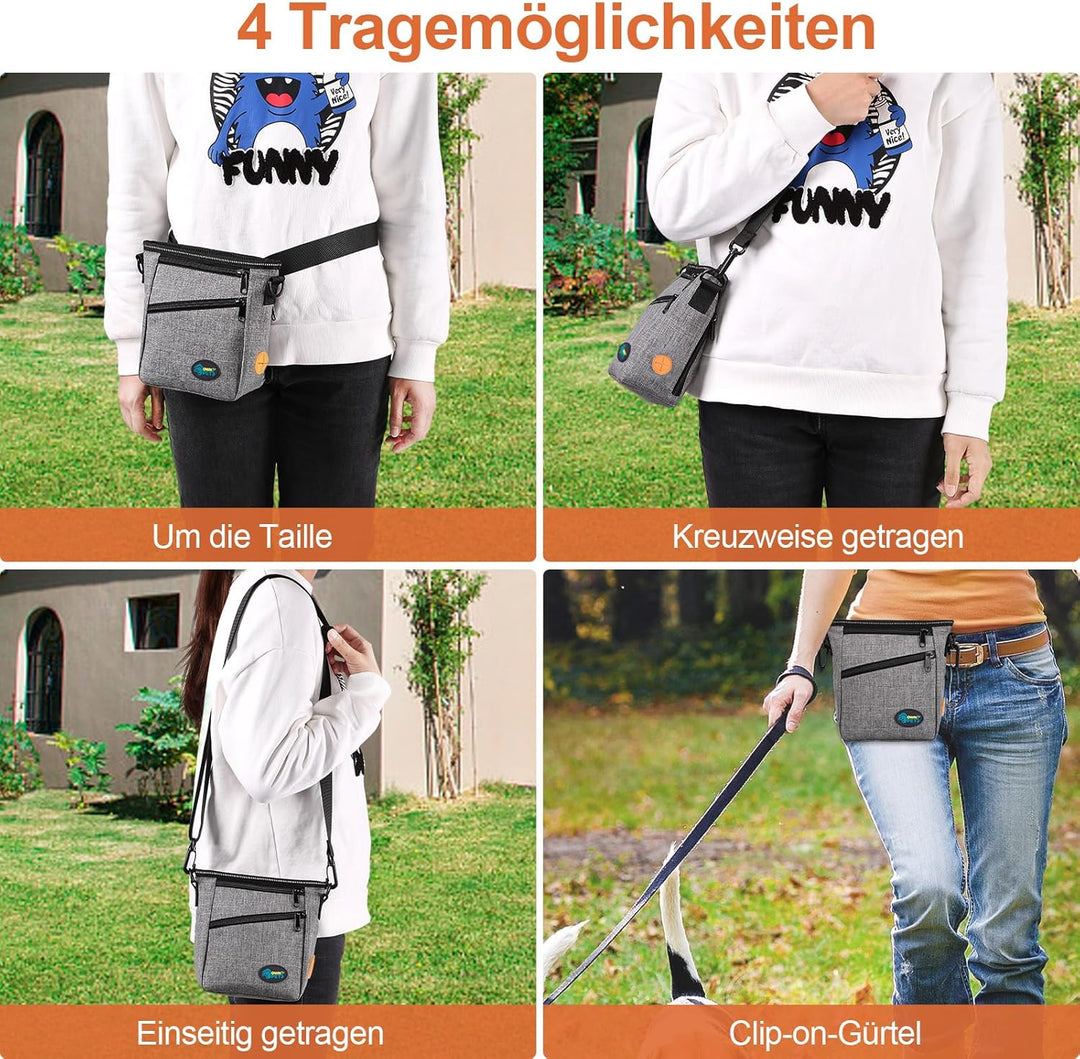 - 【4 Taschen】 Diese Leckerlibeutel für Hunde ist 20x7x18 cm gross. Innentasche zur Aufbewahrung von Hundefutter und Leckereien. In der äusseren Reissverschlusstasche oben können ein 17,6 cm grosses Telefon, Schlüssel und kleine Spielsachen