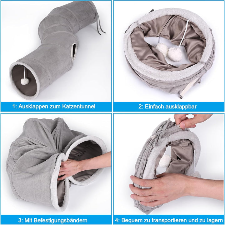 Ownpets Katzentunnel, Cat Tunnel, Katzentunnel Stoff mit Ball und Cat Teaser, Spieltunnel für Katze