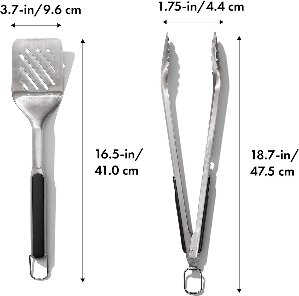 - PRAKTISCHES GRILL-DUO: Das OXO Good Grips Grillset besteht aus einer Grillzange (47,5 cm) und einem Fleischwender (41 cm) und bietet höchsten Komfort beim Wenden und Anheben von gegrillten Speisen aller Art