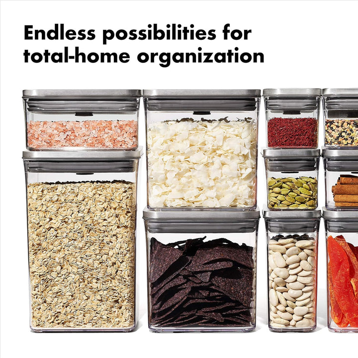 - PRAKTISCH: Die luftdichte, platzsparende Konstruktion der OXO SteeL POP-Behälter mit Deckel hält trockene Lebensmittel frisch und sorgt für Ordnung in der Küche