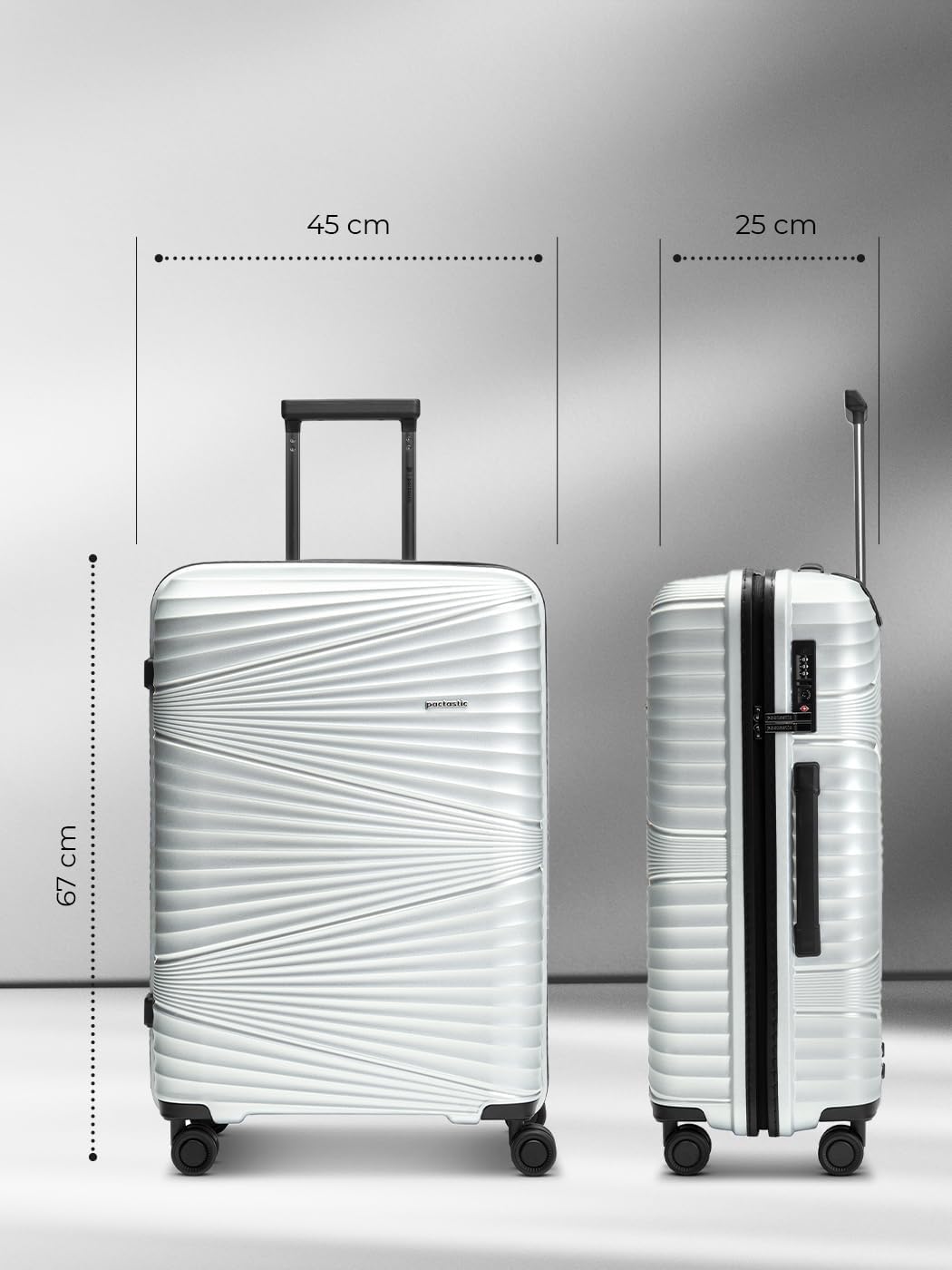 - MITTELGROSS: Der Hartschalen-Trolley bietet mit seinen 45 x 25 x 67 cm (LxBxH) und einem Volumen von 62 Liter bei 3,08 kg viel Stauraum und ist damit perfekt geeigent für jeden Urlaub bis ca. 10 Tage und 15-25 kg Gepäck.