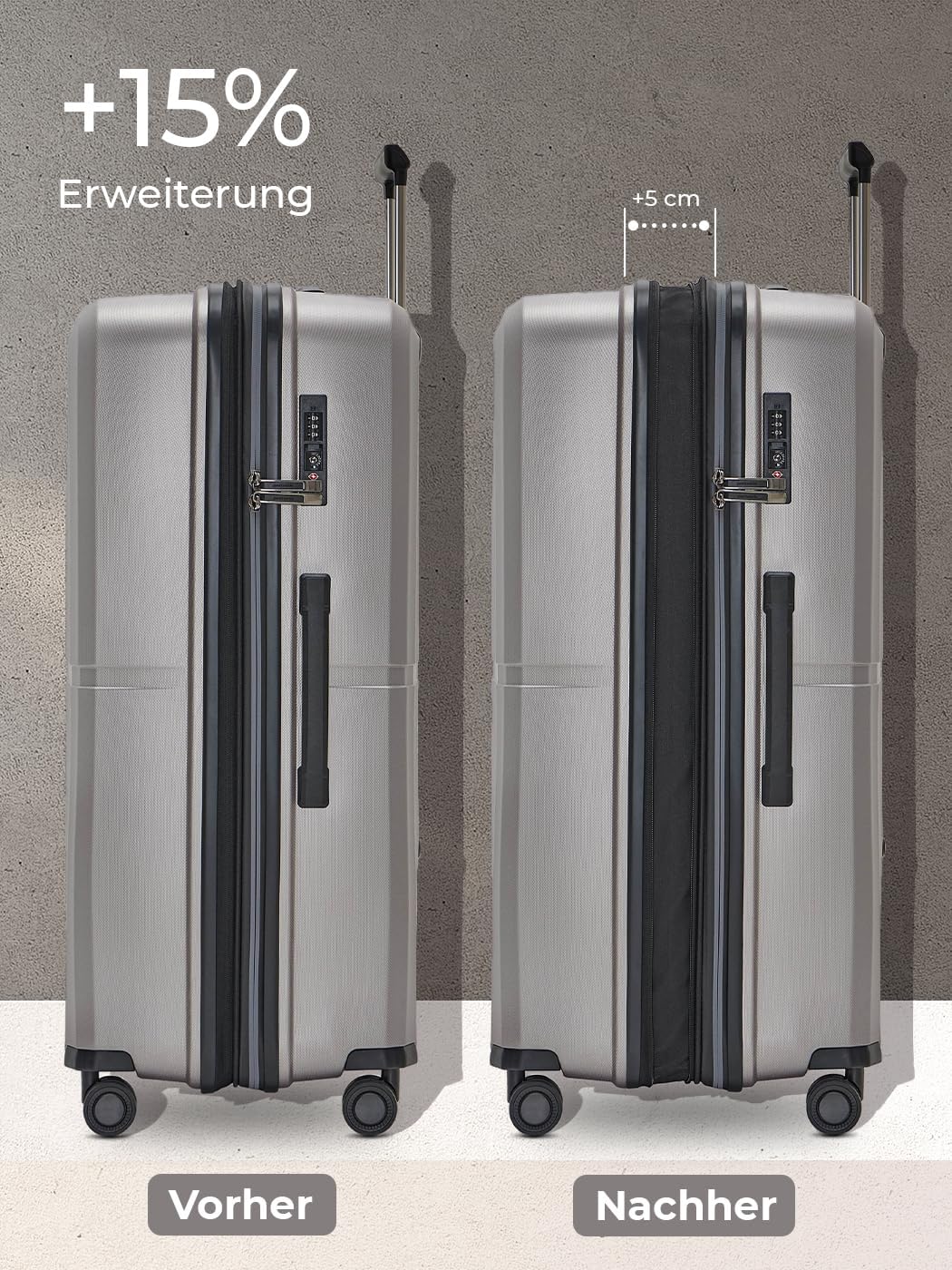 - TSA-SCHLOSS & DOPPELROLLEN: Das Zahlen-Schloss entspricht den TSA-Richtlinien und ermöglicht eine problemlose Inspektion ohne Beschädigung für Reisen in die USA und andere Länder mit TSA-Sicherheitsvorschriften. Ihren Zahlencode können Sie selbst