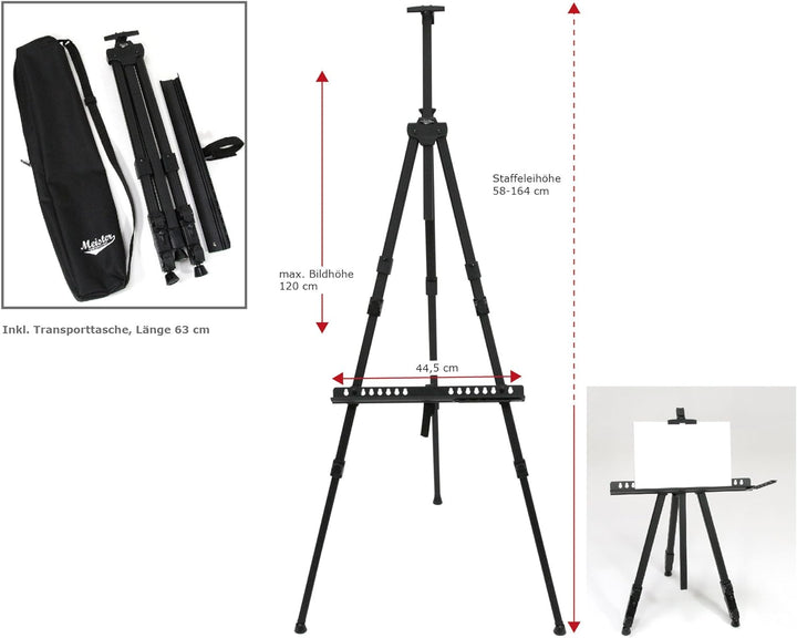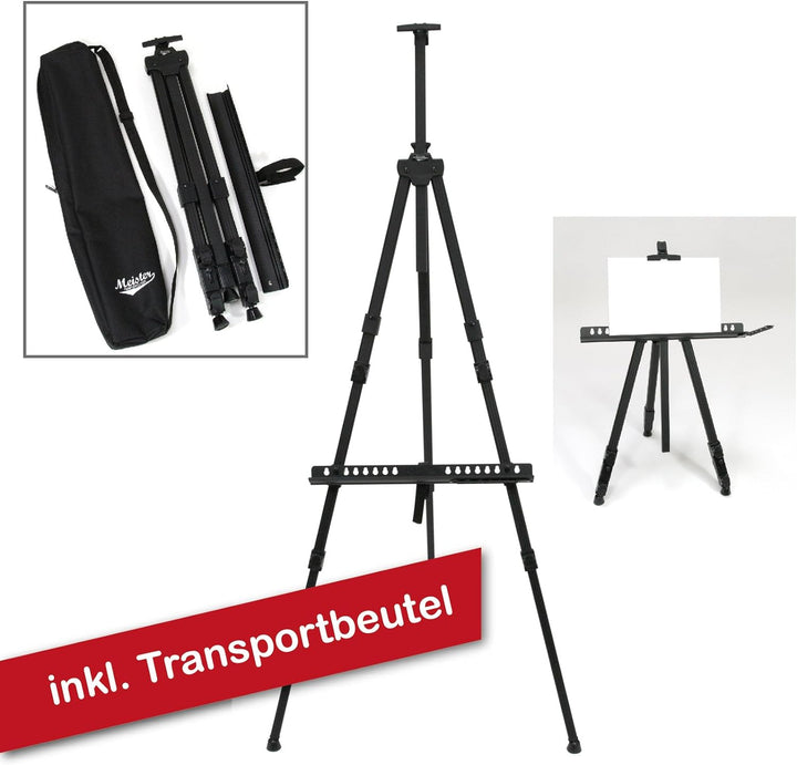 - LEICHT & PRAKTISCH: Feldstaffelei aus Aluminium – stabil und dennoch leicht. Lieferung inkl. praktischer Transporttasche und einem kleinen Packmass für optimale Mobilität und den Einsatz im Freien - ohne abgebildetes Dekomaterial. Gewicht inkl.