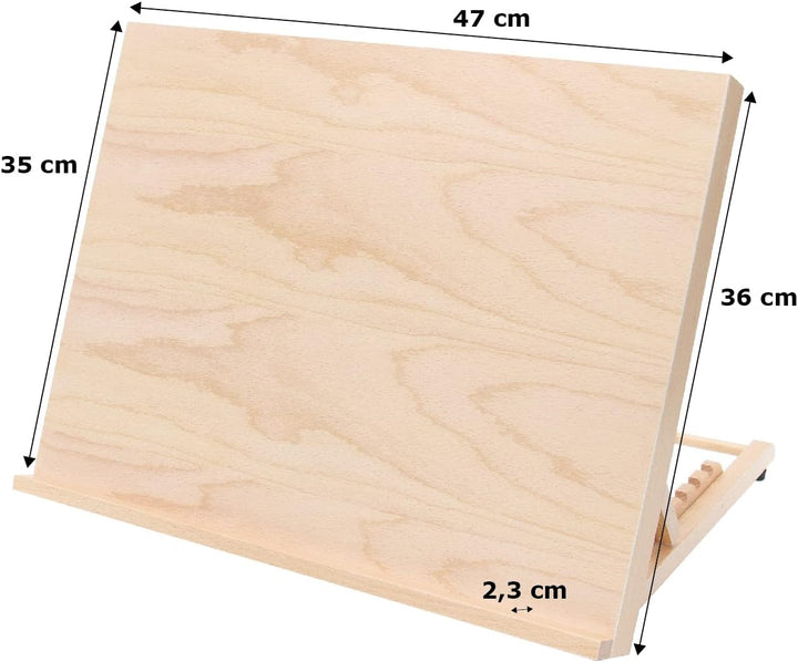 - ✔ QUALITÄT: Die hochwertige Tisch Staffelei hat einen Rahmen aus Buchenholz FSC und eine Arbeitsplatte aus robustem Schichtholz, jeweils lasiert für eine leichte Oberflächenreinigung. Der Rahmen aus Buchenholz sorgt für eine gute Stabilität, denn