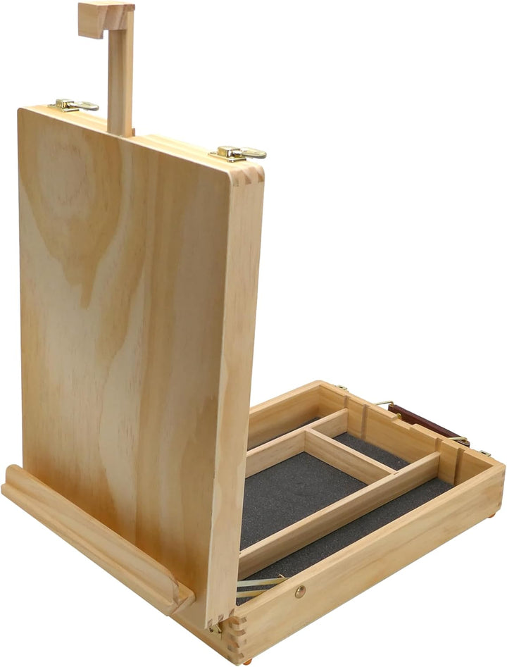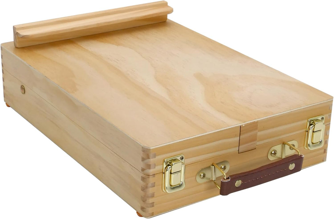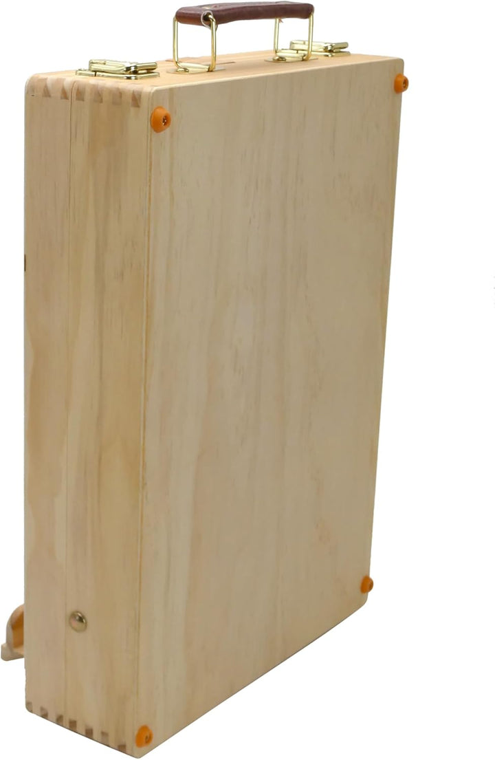 - ✔ TISCHSTAFFELEI: Beim Öffnen des Koffers verwandelt sich der Deckel in eine grosse verstellbare Tischstaffelei, auf der Keilrahmen bis zu 70cm im Hochformat eingespannt werden können. Der Koffer hat zwei messingfarbene Verschlüsse, einen stabilen Tragegriff sowie vier Gummifüsse. Ideal eignet er sich auch als Utensilienkoffer zur Aufbewahrung diverser Malartikel.