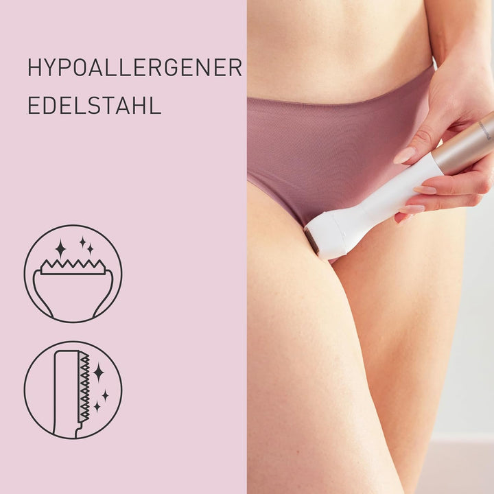 - BIKINI-TRIMMER, BIKINI-RASIERER & BIKINI-KAMMAUFSATZ: Bewältigen Sie dickes, langes Haar schnell mit dem Bikini-Trimmer-Aufsatz, erzielen Sie eine sanfte, glatte Rasur und verwenden Sie den Bikini-Kammaufsatz für eine präzise Pflege