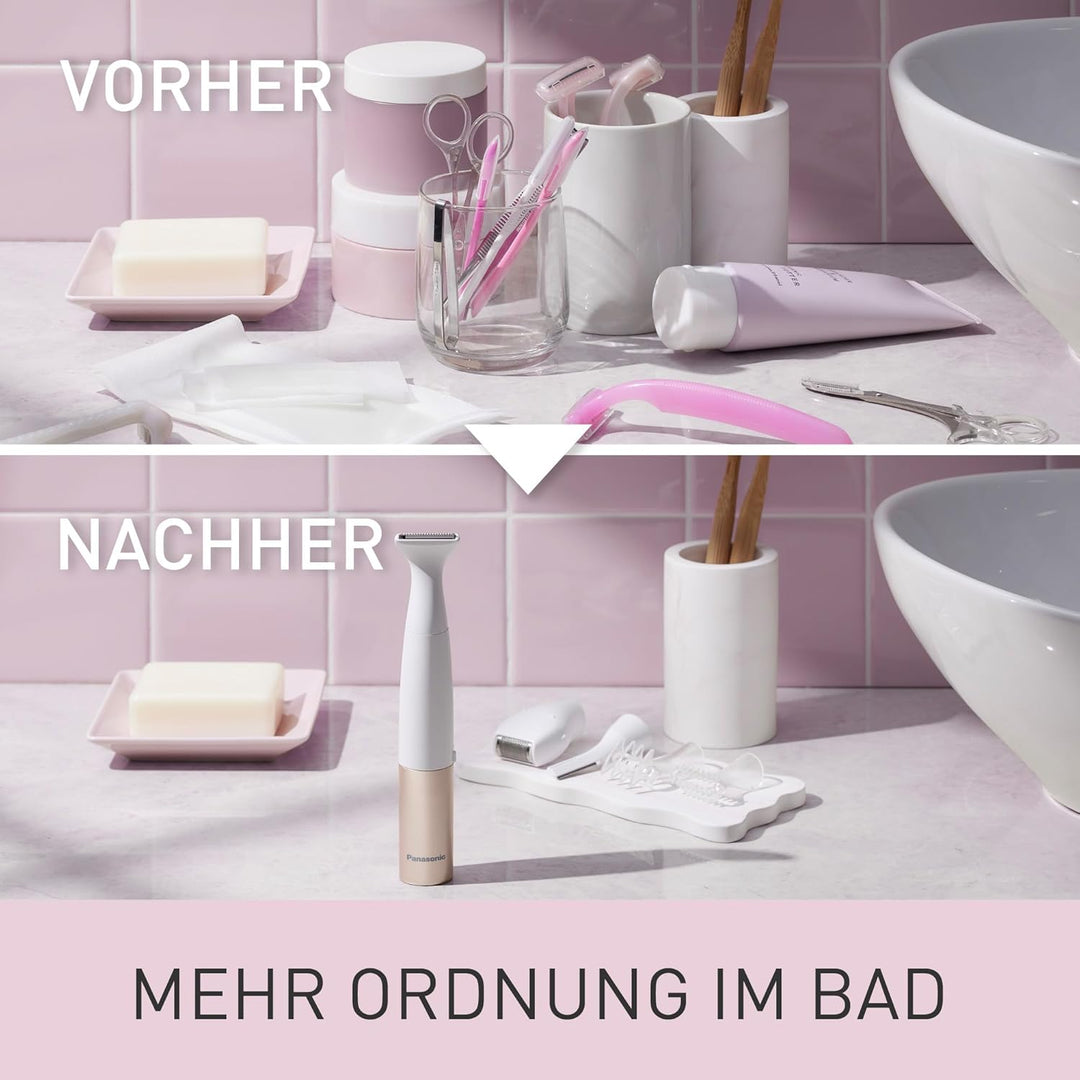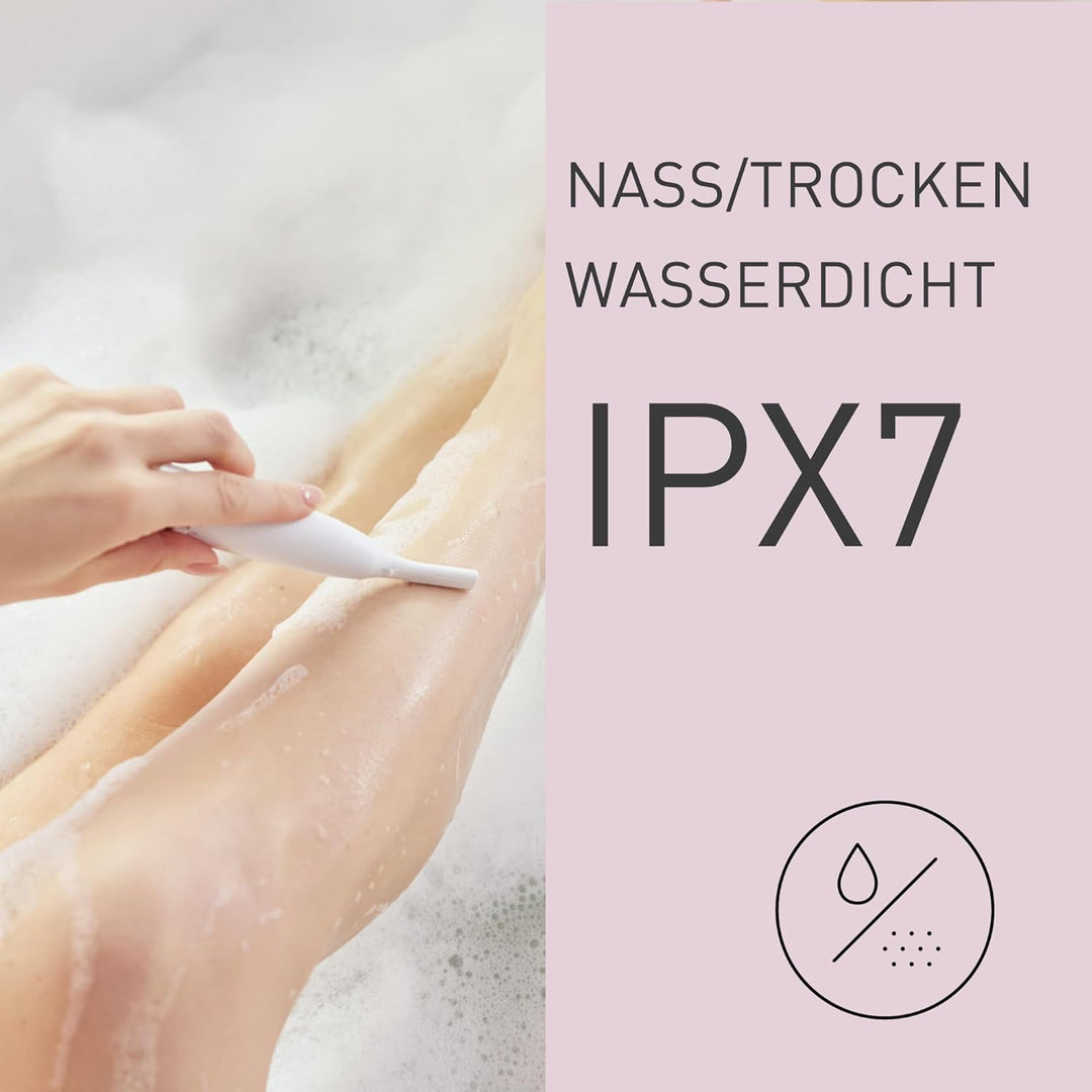 - KOMPAKTES, WASSERDICHTES DESIGN: Nutzen Sie diesen Damen-Trimmer nass oder trocken, in und ausserhalb der Dusche dank IPX7-Wasserschutz, und geniessen Sie sein schlankes, reisefreundliches Design, wodurch er problemlos in eine Kosmetiktasche passt