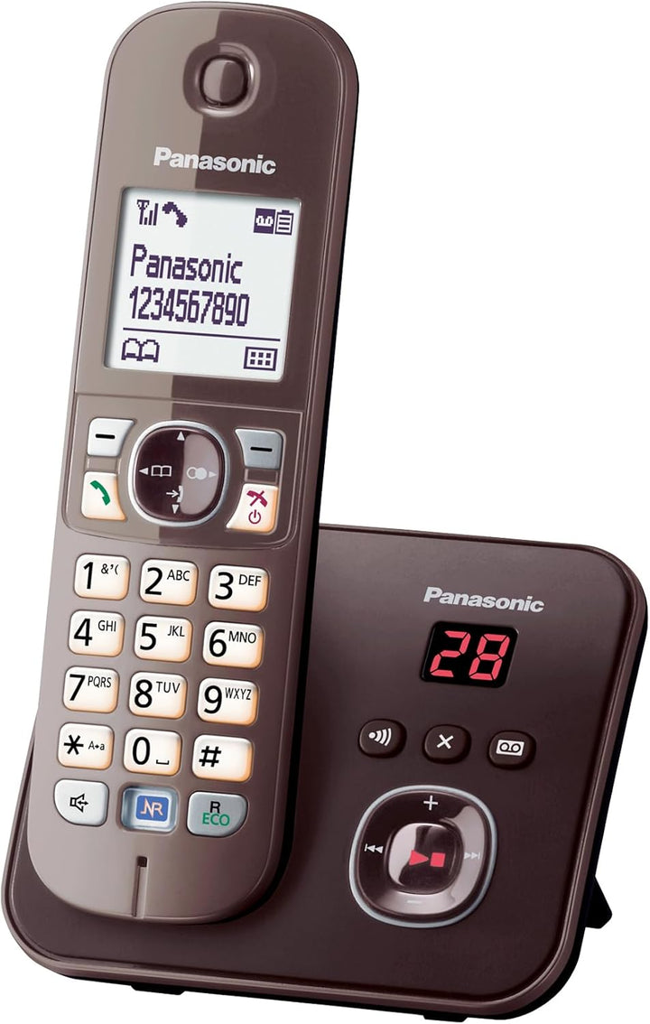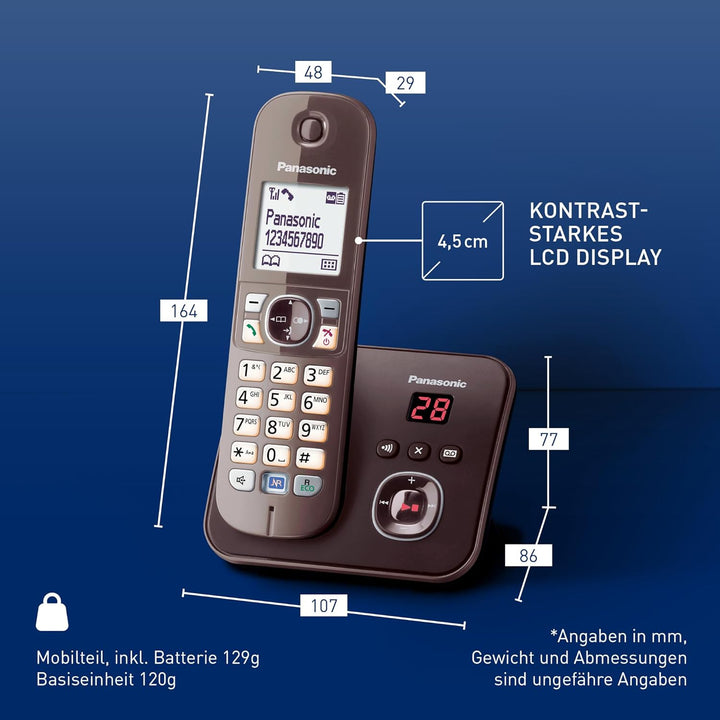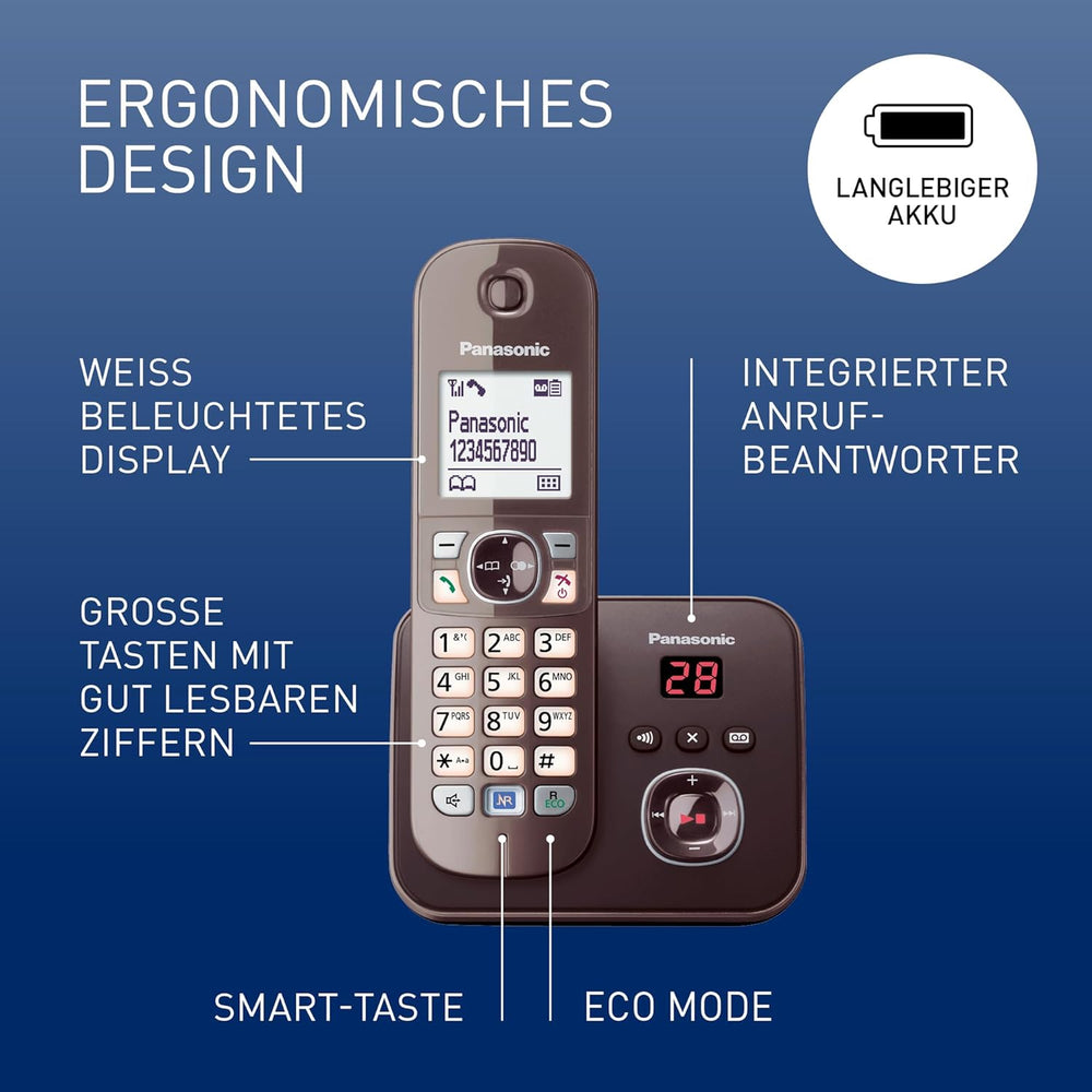 - Modernes Telefon (braun) mit Anruferliste der letzten 50 Anrufe und Freisprechfunktion