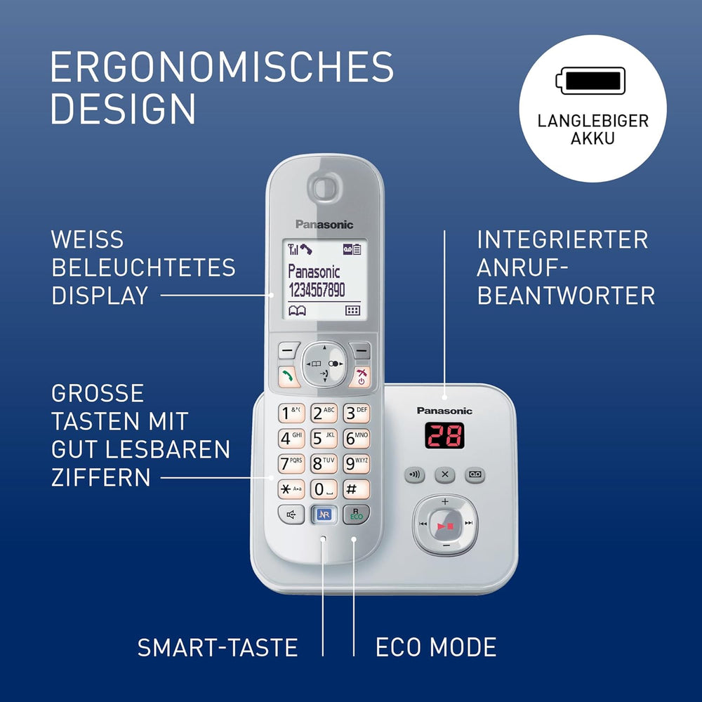 - Modernes Telefon (silber) mit Anruferliste der letzten 50 Anrufe und Freisprechfunktion