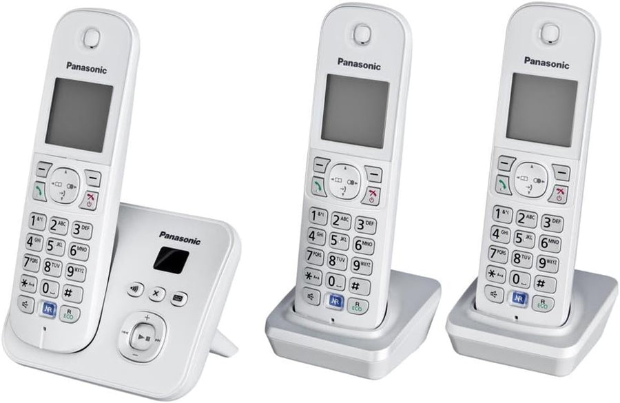 PanasonicKX-TG6823GS DECT Schnurlostelefon mit Anrufbeantworter (3 Mobilteile, strahlungsarm, Eco-Mo