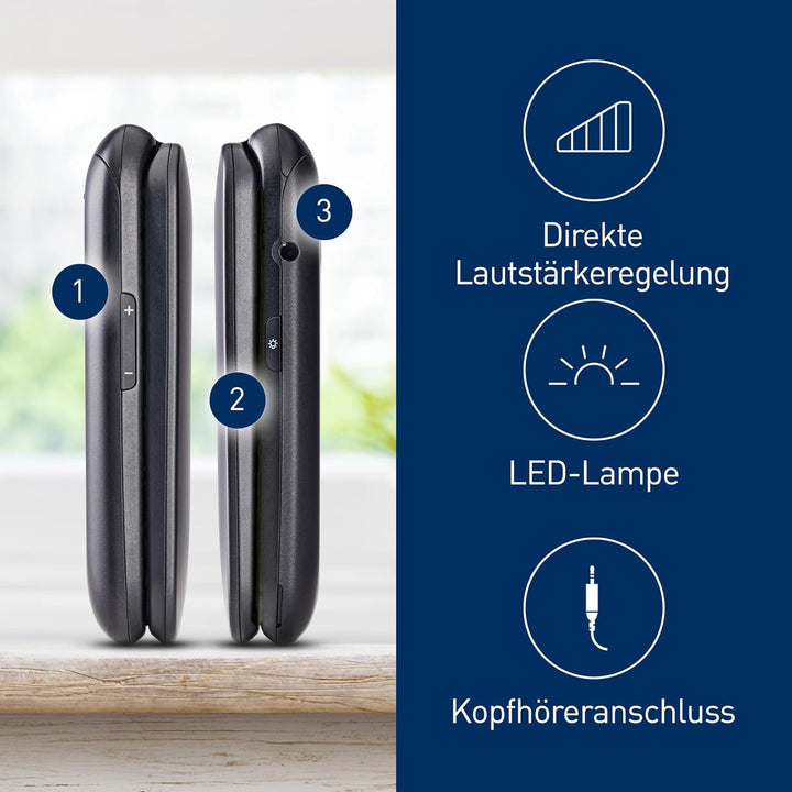 • STOSSFESTE KONSTRUKTION: Dieses leicht zu bedienende Klapphandy ist stossfest und übersteht Stürze aus einer Höhe von bis zu 1,5 m (gemäss MIL-STD-810G)