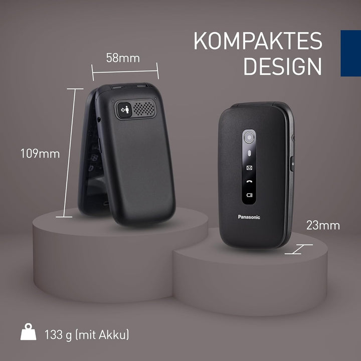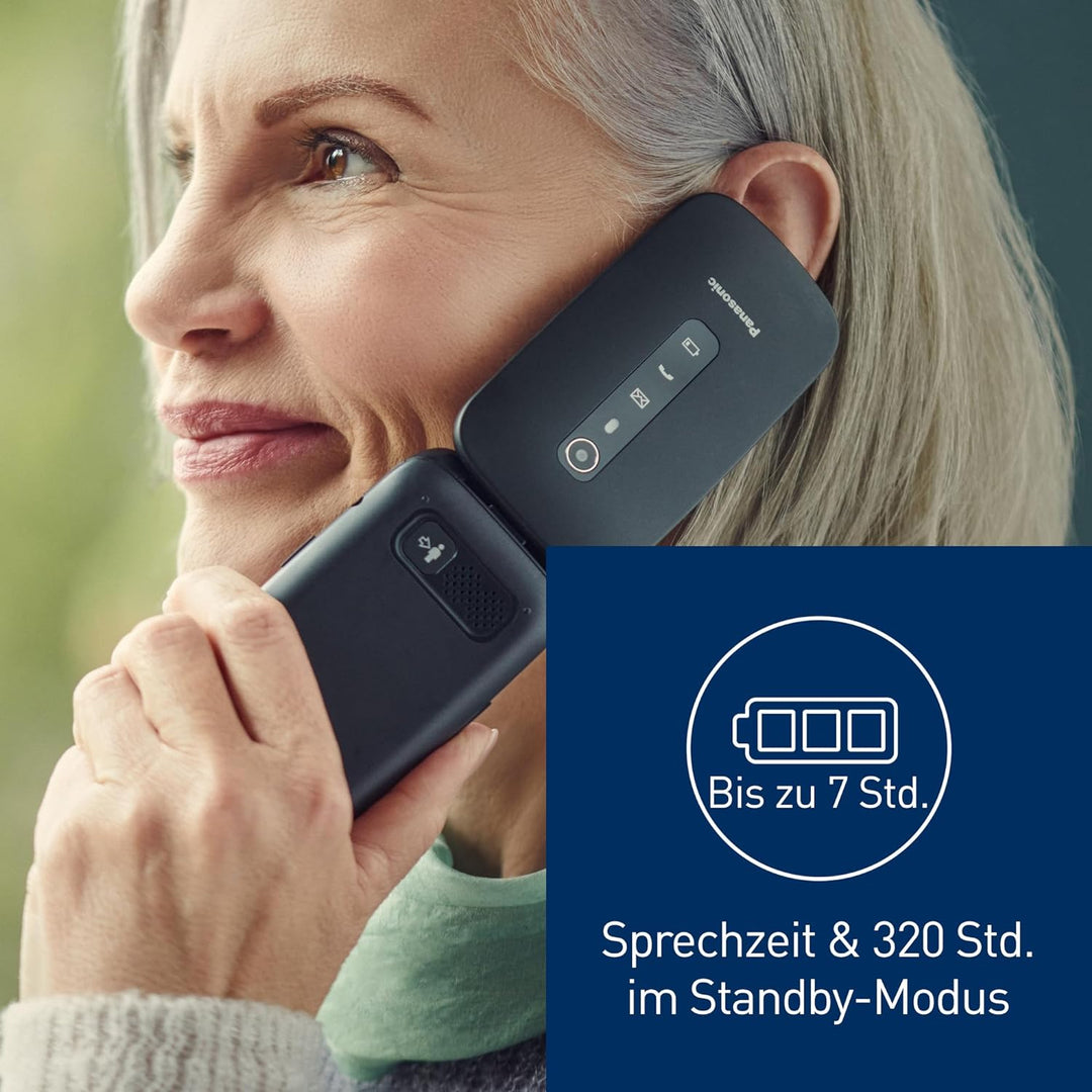 Panasonic KX-TU550EXB 4G Essentials Clamshell Handy für Senioren, 1,2 MP Kamera, Seniorentelefon mit