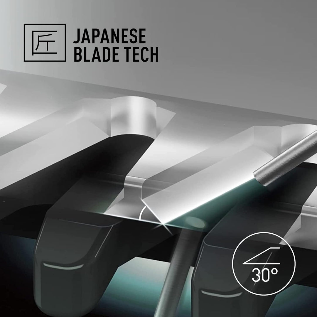 - NANOSCHLIFF-KLINGEN: Dieser Elektrorasierer verfügt über einzigartige, scharfe Klingen aus japanischem Edelstahl mit 30-Grad-Nanoschliff, mit denen sich alle Stoppeln und alle Bart- und Haartypen mühelos bearbeiten lassen.