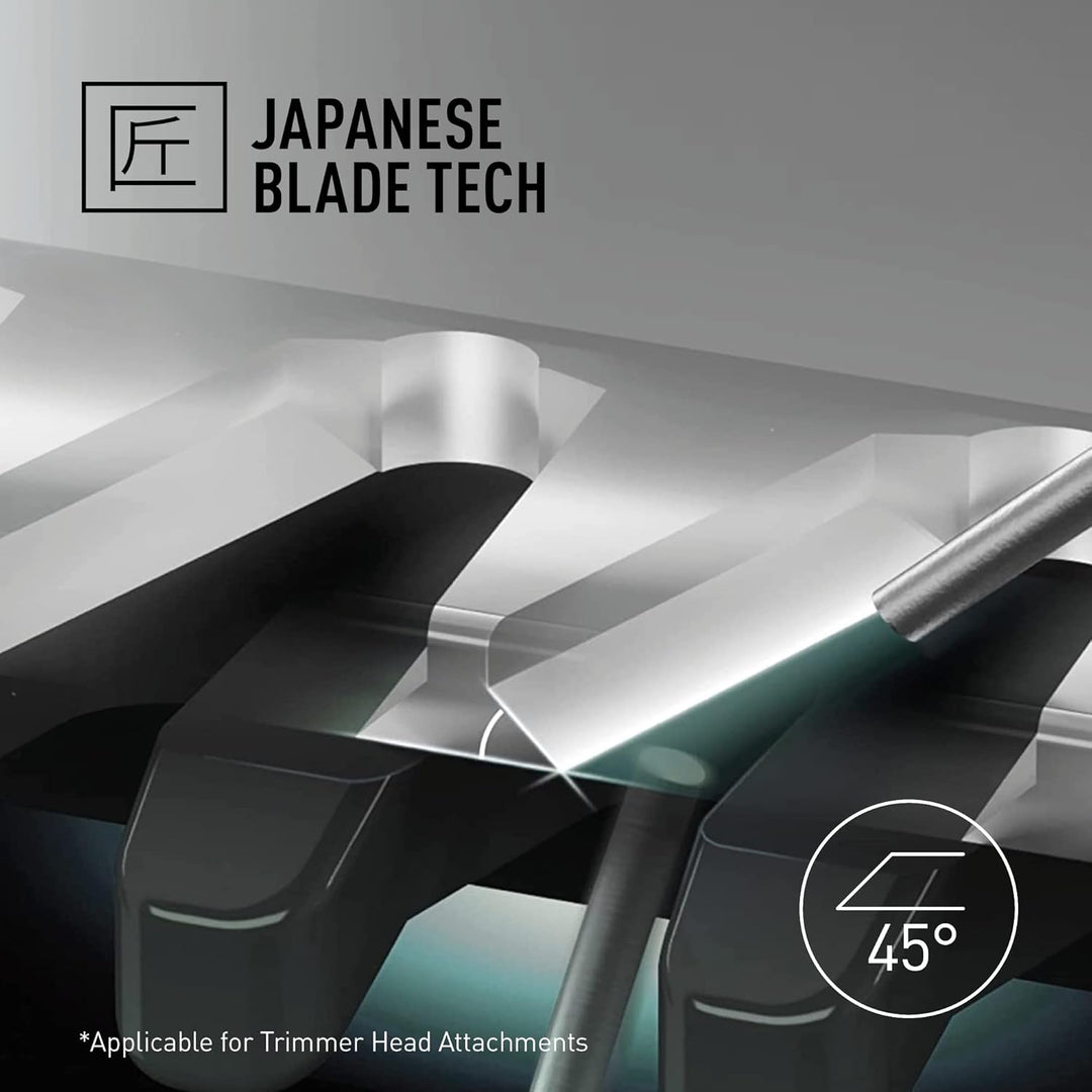 - FORTSCHRITTLICHE JAPANISCHE KLINGENTECHNOLOGIE: Dieser Barttrimmer verfügt über einzigartige, scharfe Klingen aus japanischem Edelstahl mit 45-Grad-Nanoschliff, mit denen sich alle Stoppeln und alle Bart- und Haartypen mühelos bearbeiten lassen.
