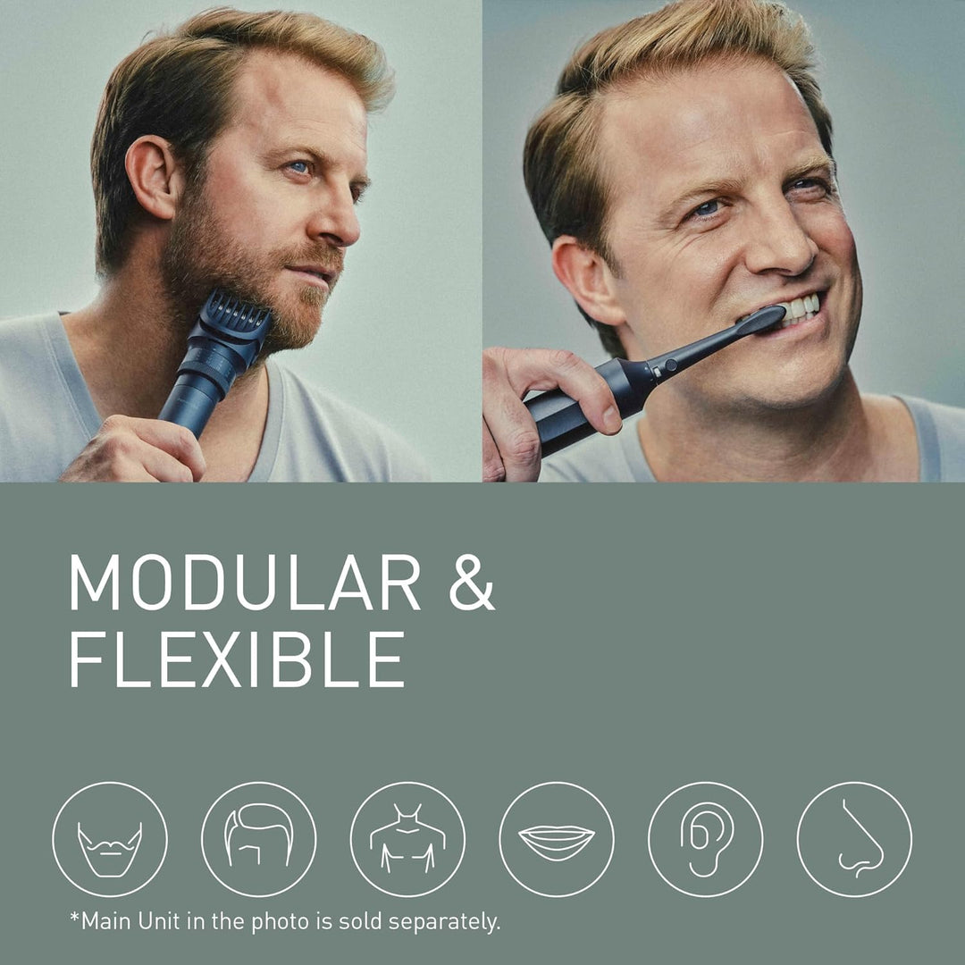 - PERSONALISIEREN SIE IHR ERLEBNIS: Das modulare Körperpflege-System ist mit allen MULTISHAPE-Zubehörteilen kompatibel. Ersatzaufsätze, einschliesslich Bart-/Haartrimmer, Bart-/Haar-/Körpertrimmer, 3-Klingen-Scherkopf, elektrische Zahnbürste und
