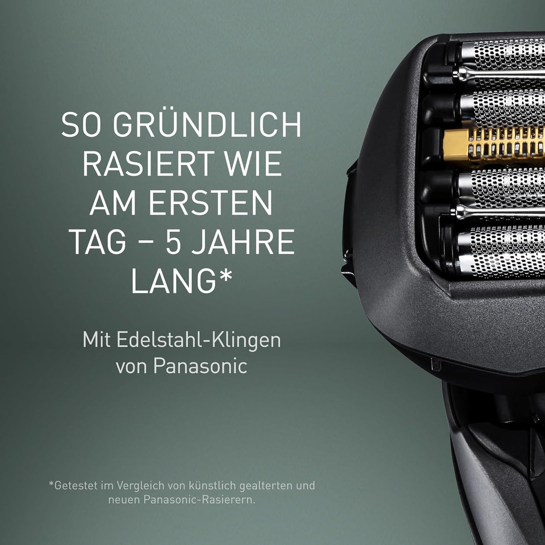 - SO GRÜNDLICH RASIERT WIE AM ERSTEN TAG – 5 JAHRE LANG mit Edelstahl-Klingen von Panasonic. Getestet im Vergleich von künstlich gealterten und neuen Panasonic-Rasierern. Für weitere Informationen besuchen Sie bitte unsere Webseite
