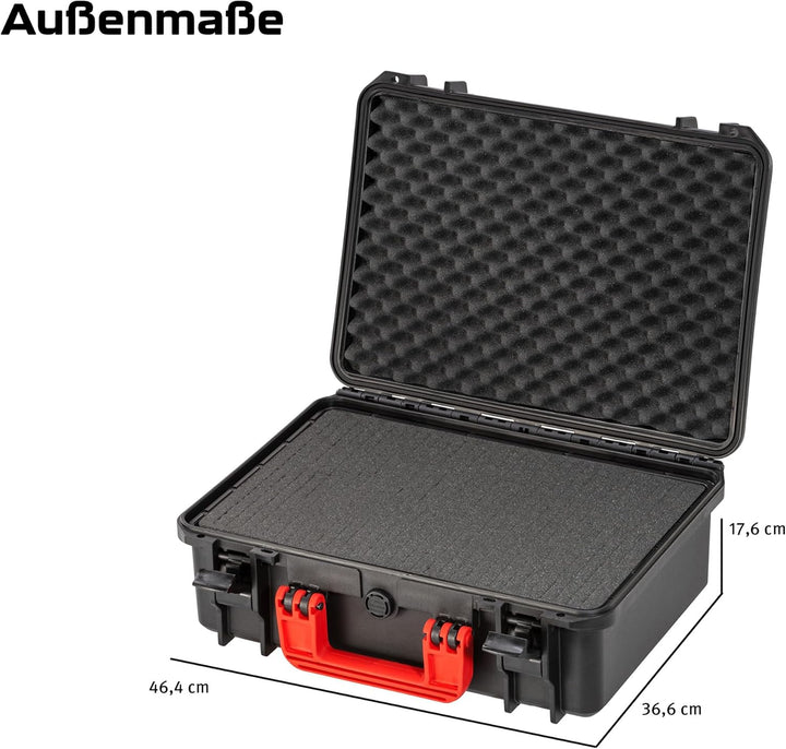 - Die extra starke Wand aus Polypropylen macht ihn nicht nur extrem stabil; auch Wasser, Staub und Luft haben dank einer umlaufenden Neoprendichtung keine Chance einzudringen; gleichzeitig sorgt ein Ventil für Druckausgleich