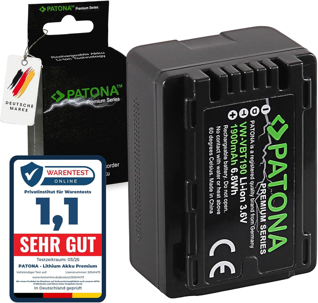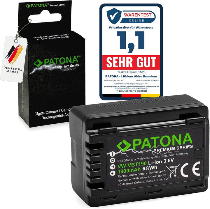 PATONA Premium Akku VW-VBT190 E (echte 1900mAh) mit Infochip - Kompatibel mit Panasonic HC VXF11 VXF