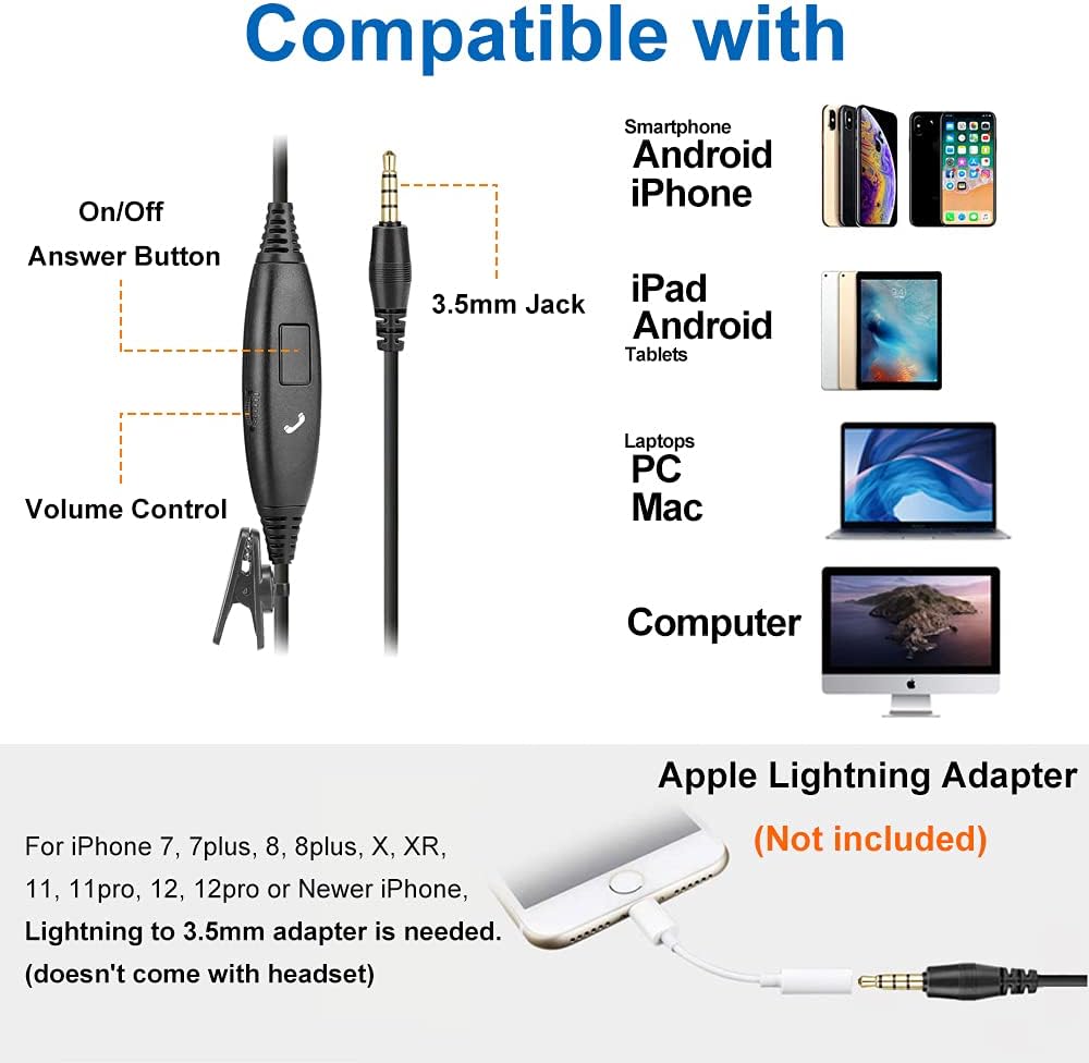 - BREITE KOMPATIBILITÄT: 3,5mm Klinke Headset Handy funktioniert mit iPhone, Samsung, die meisten Smartphones und PC Computer Laptop Mac iPad Tablet mit 3,5 mm Kopfhörer Klinke. Für iPhone 7...oder ein neueres iPhone ist ein Lightning auf