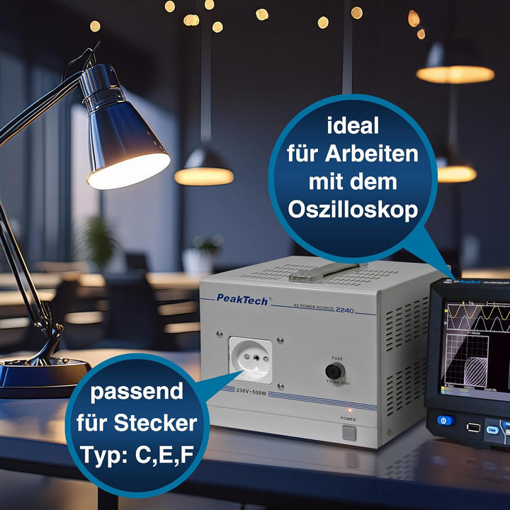 - MOBILER EINSATZ: Trotz eines stabilen Gehäuses und einer hohen Ausgangsleistung von 500 W über den internen Transformator, wiegt das Messgerät nur wenige Kilo. Für beste Mobilität im Arbeitsalltag