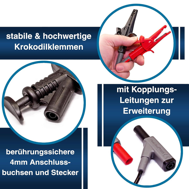 - HOHE SICHERHEIT FÜR BENUTZER Die Klemmen und Anschlusskabel des umfangreichen Case unterliegen neusten Sicherheitsrichtlinien und gewähren dem Nutzer dadurch eine hohe Sicherheit bei jeder Anwendung