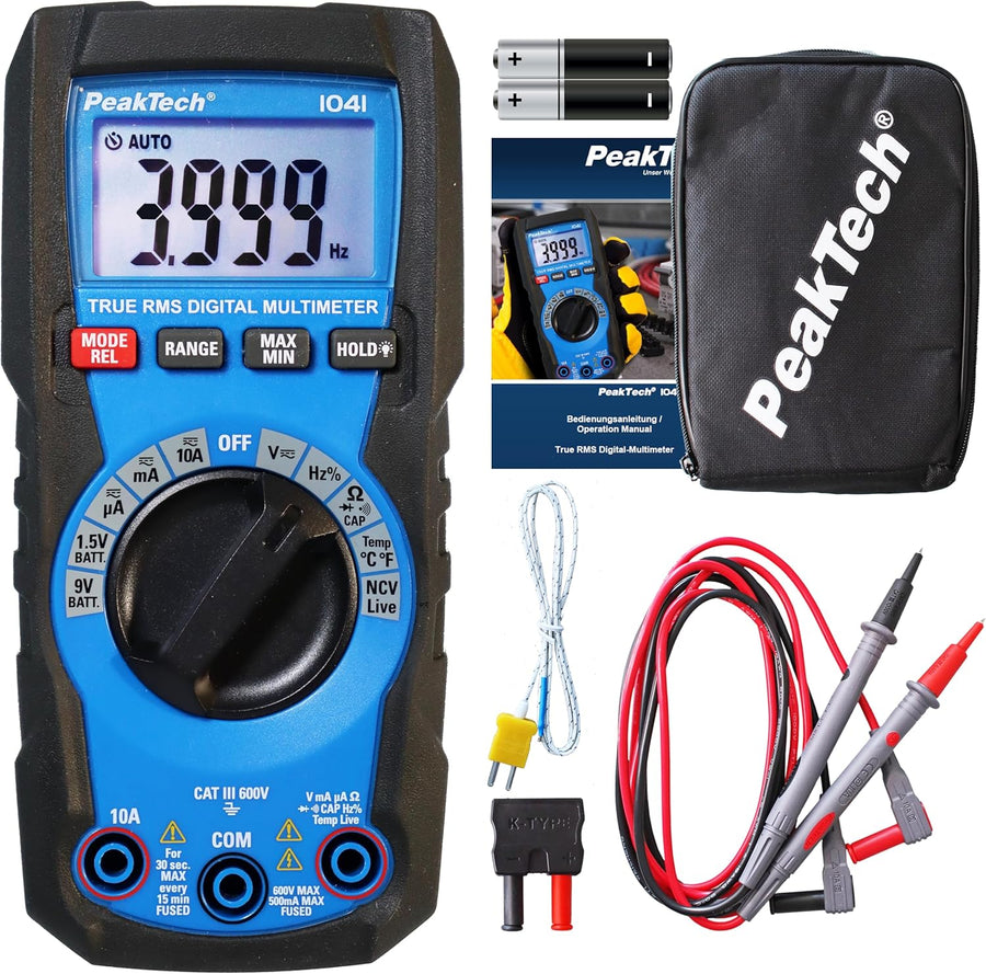 - BEGEISTERNDE TECHNIK: Das PeakTech 1041 bietet vielfältige Messfunktionen von Widerstands-, bis zu Temperaturmessungen sowie die Möglichkeit, Battterien mit dem eingebauten Batterietester zu prüfen