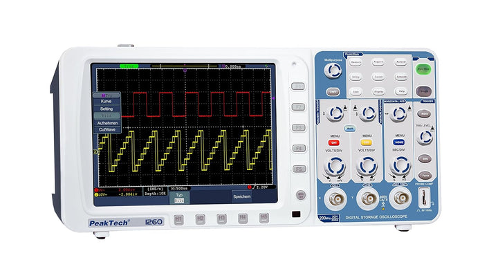 PeakTech 1260 – 2-Kanal Speicher-Oszilloskop (200MHz) mit USB-, VGA-, LAN-Schnittstelle & 8“ Hochauf