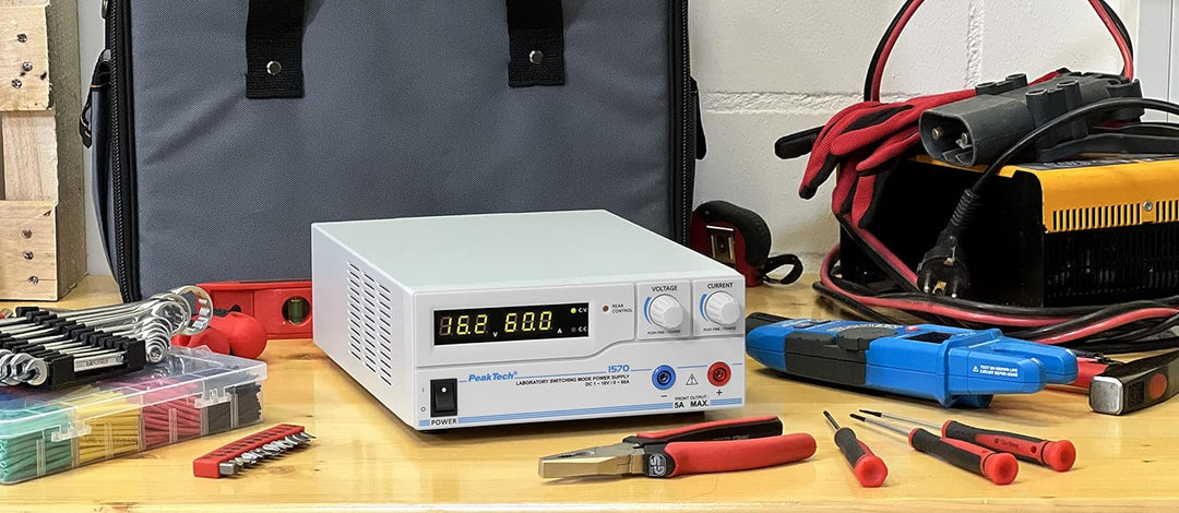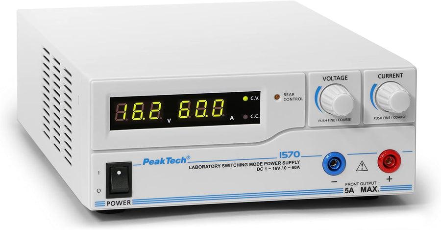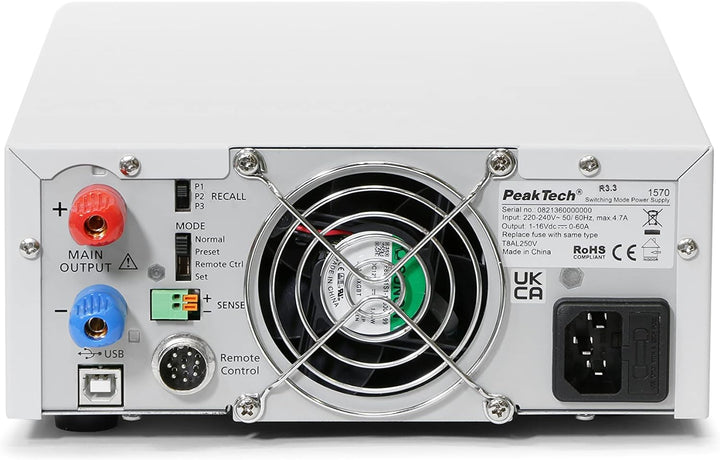 - PROFI-GERÄT: Das hochwertige Schaltnetzteil mit geringem Profil und platzsparendem Gehäuse von PeakTech erlaubt eine Vielzahl von Anwendungen in den Bereichen Telekommunikation, Labor und Industrie