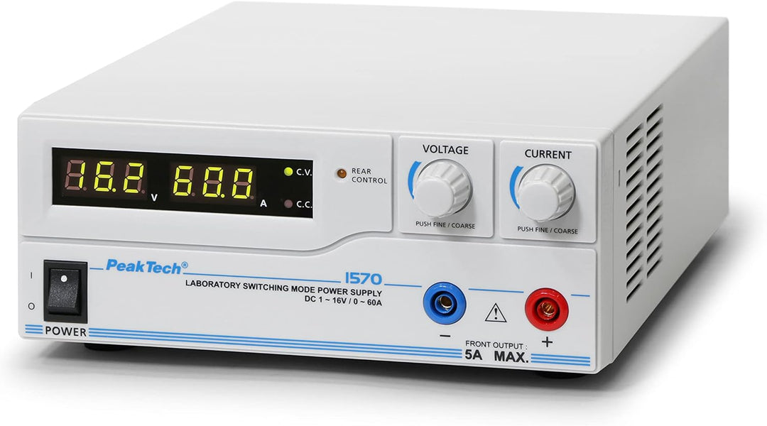 - INFO: Ausgangsspannung: 1 – 16 V DC; Ausgangsstrom: 60 A / 5 A; Ausgangsleistung 960 Watt. Lieferumfang: Netz- und USB-Kabel, Windows-Software/ Bedienungsanleitung. Masse: 200 x 90 x 325 mm; Gewicht 2,6 kg
