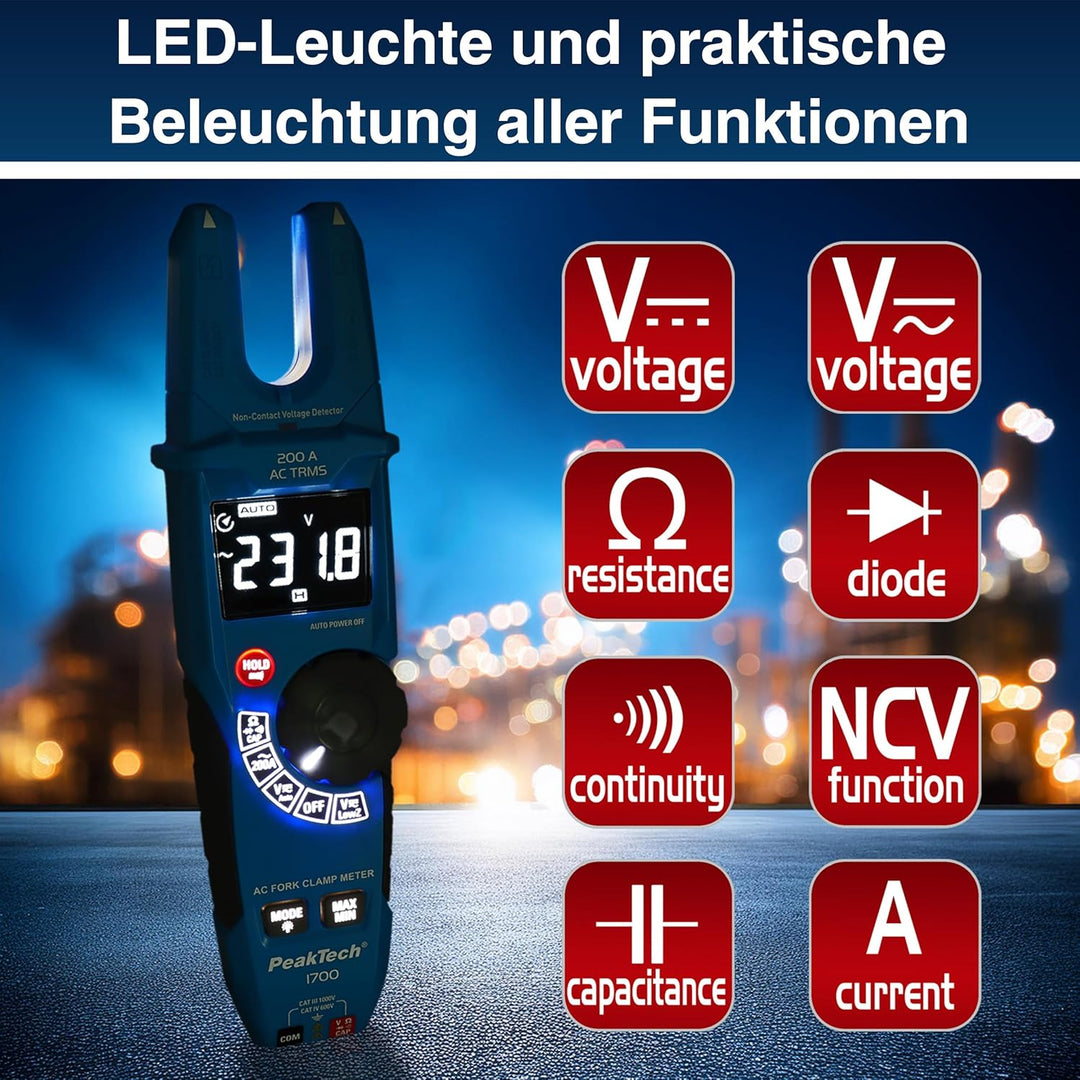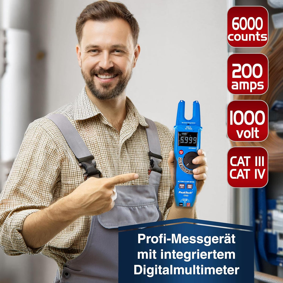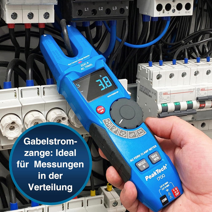 - PROFI-GERÄT: Die Stromzange P 1700 eignet sich zur Spannungsmessung an Geräten & Anlagen. Ihre gabelförmige Öffnung ermöglicht vor allem in schwer zugänglichen Bereichen schnelles, effektives Messen