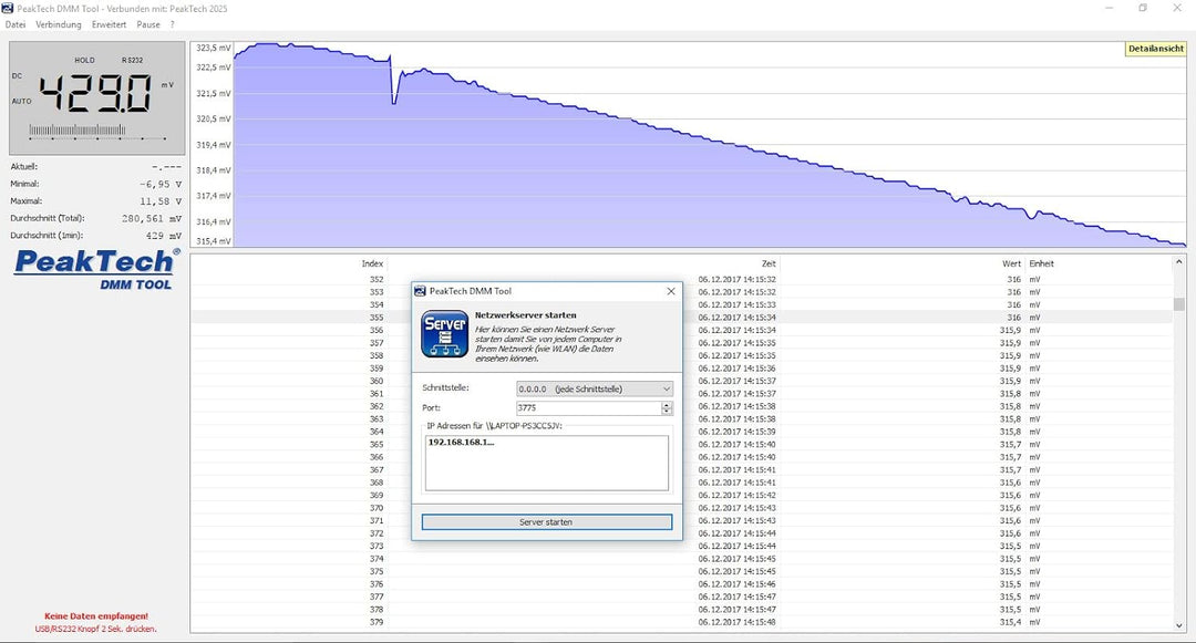 - ANWENDERFREUNDLICH: Die automatische Bereichswahl bietet eine praktische Bedienung. Die integrierte Datenschnittstelle ermöglicht langzeit Datenaufzeichnungen in Verbindung mit der PC-Software