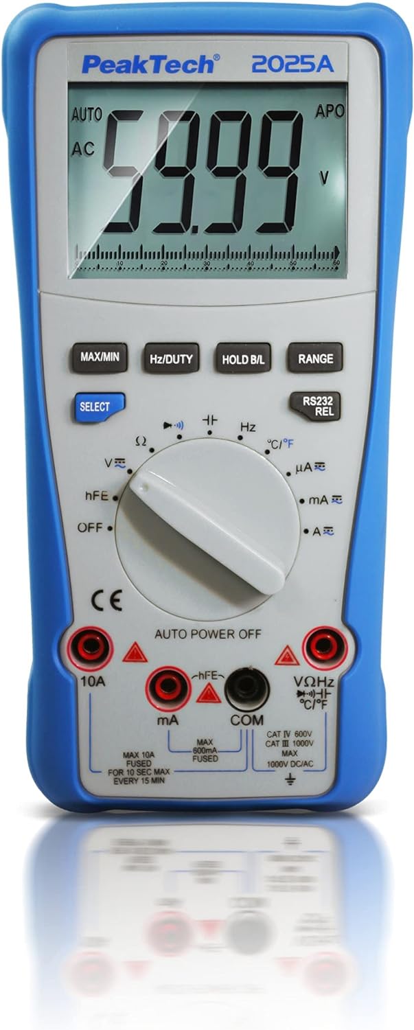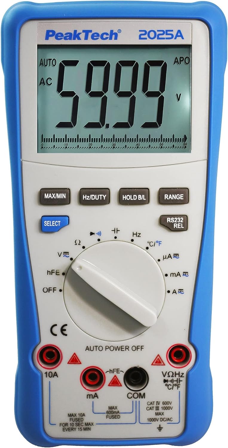 - BEGEISTERNDE TECHNIK: Das PeakTech 2025 A kann verwendet werden, um DCV, ACV, DCA, ACA, Widerstand, Kapazität, Diode, Durchgang, Temperatur und Frequenz zumessen. Es entstehen vielfältige Anwendungen